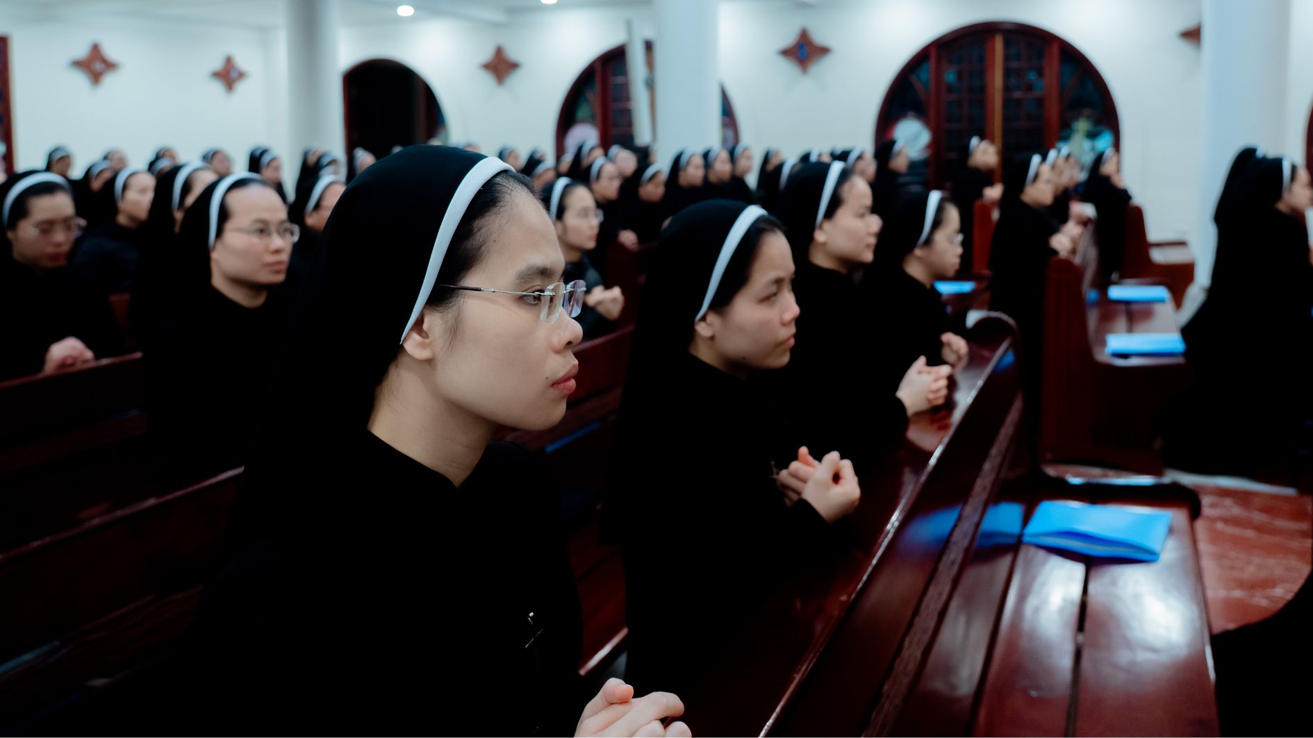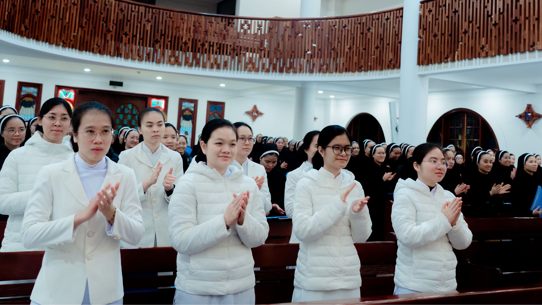 Trước đó, trong bầu khí linh thiêng và lắng đọng, cộng đoàn đã cùng nhau tham dự giờ cầu nguyện Taizé thật sốt sắng. Những lời thánh ca đơn sơ, trầm lắng được lặp đi lặp lại như nhịp đập của con tim dâng lên Thiên Chúa, đã giúp mỗi chị em trở về với chiều sâu nội tâm, nhìn lại hành trình một năm qua trong ánh sáng Thánh Giá. Đó là khoảng thời gian thinh lặng để tạ ơn vì muôn vàn hồng ân đã lãnh nhận, xin ơn tha thứ cho những thiếu sót, và kín múc sức mạnh thiêng liêng để hướng về ngày mừng kỷ niệm 356 năm thành lập Hội dòng với tâm tình khiêm tốn và phó thác. Chính trong bầu khí cầu nguyện ấy, tâm hồn mỗi người được chuẩn bị để bước vào Thánh lễ tạ ơn cách ý thức và sâu lắng hơn.