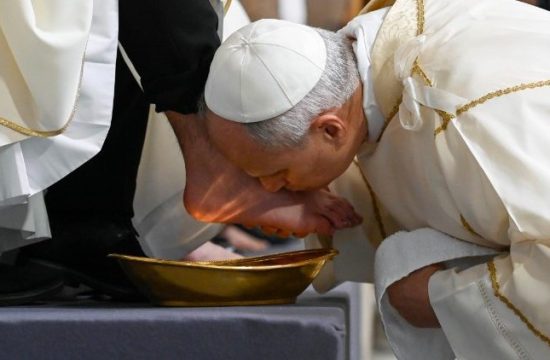 Chiều ngày 2/4, Thứ Năm Tuần Thánh, Đức Thánh Cha đã chủ sự Thánh Lễ Tiệc Ly tại Đền thờ Thánh Gioan Laterano ở Roma, với nghi thức rửa chân.