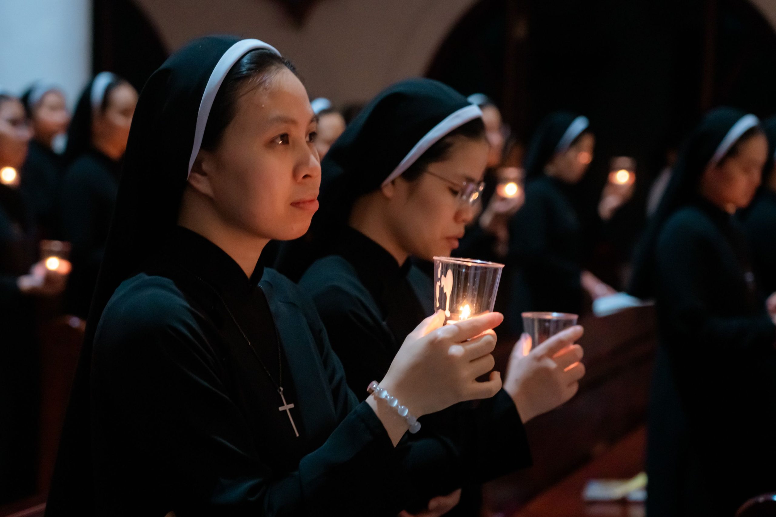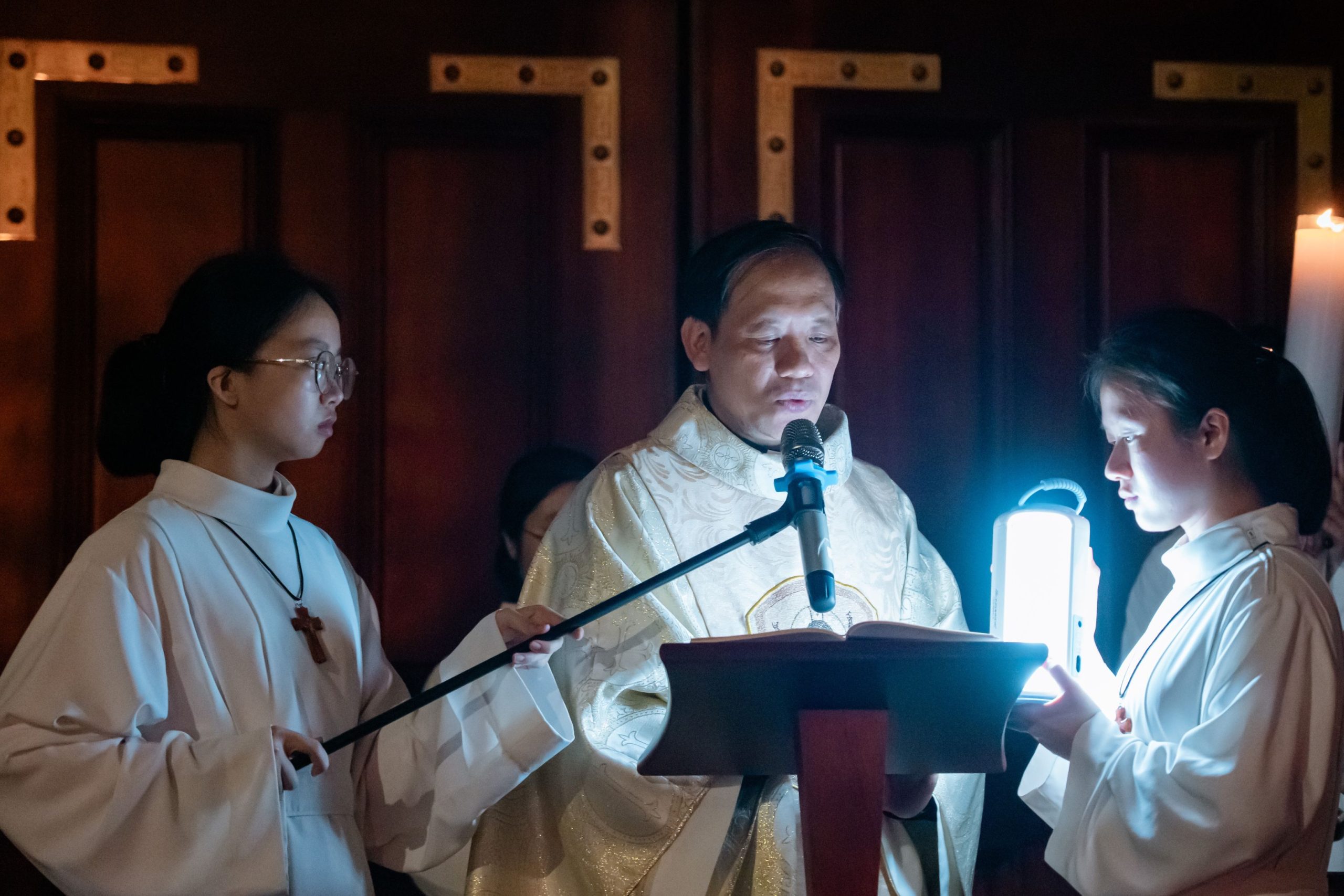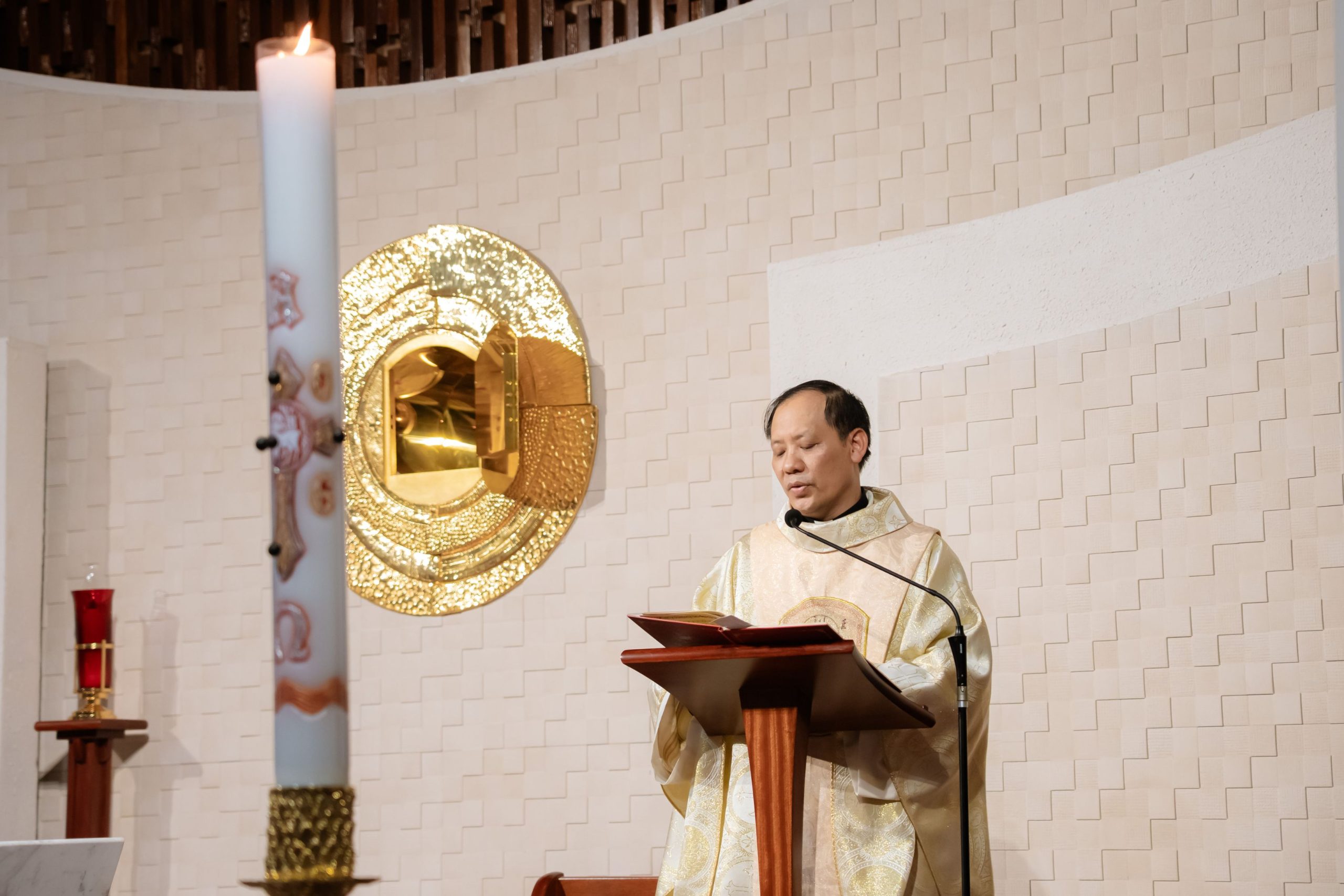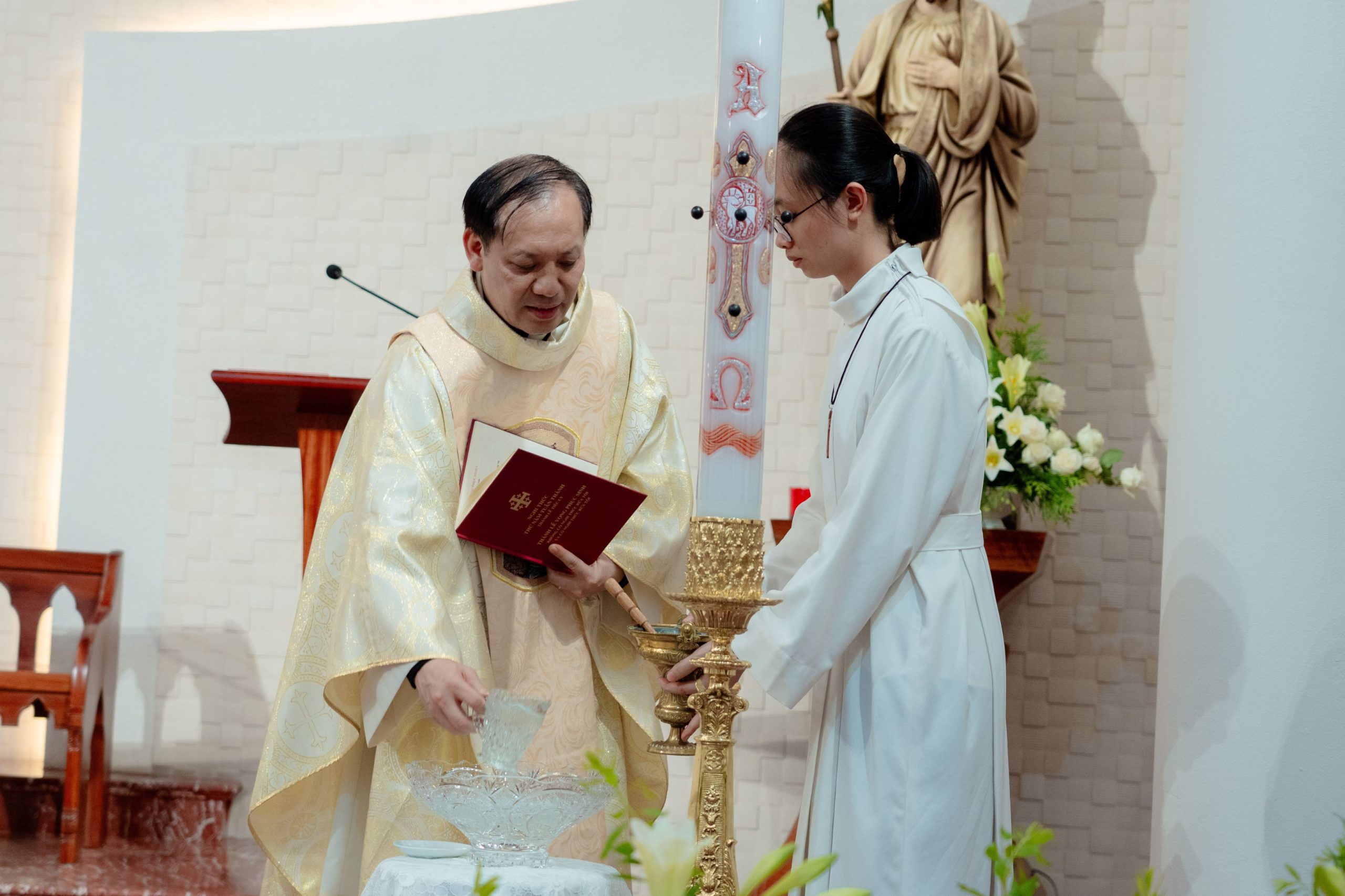 Trong bầu khí linh thiêng và trang trọng của Đêm Canh Thức Vượt Qua, vào lúc 20h00 Thứ Bảy, ngày 04/4/2026, cộng đoàn Nhà Mẹ – Dòng Mến Thánh Giá Hà Nội đã long trọng cử hành Đêm Vọng Phục Sinh – đêm thánh cao trọng nhất trong năm phụng vụ, tưởng niệm Đức Kitô từ cõi chết sống lại, đem ánh sáng và niềm hy vọng mới cho toàn thể nhân loại. Thánh lễ do Cha Tuyên úy Giuse Vũ Quang Học chủ sự, cùng với sự tham dự sốt sắng của đông đảo chị em trong cộng đoàn.