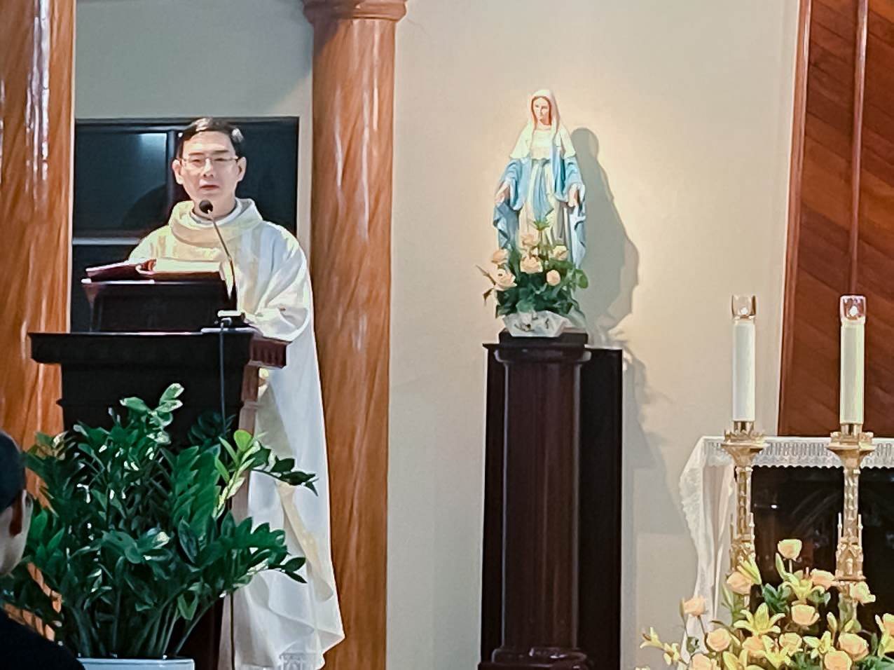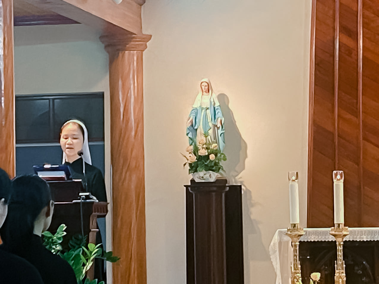 Sau Thánh lễ, Chị Tê-rê-xa Đặng Thị Hữu – Phó phụ trách cộng đoàn – thay mặt chị em bày tỏ tâm tình tri ân sâu xa đến Cha An-tôn Nguyễn Xuân Thắng, OFM vì sự hiện diện và những chia sẻ đầy tâm huyết của ngài.