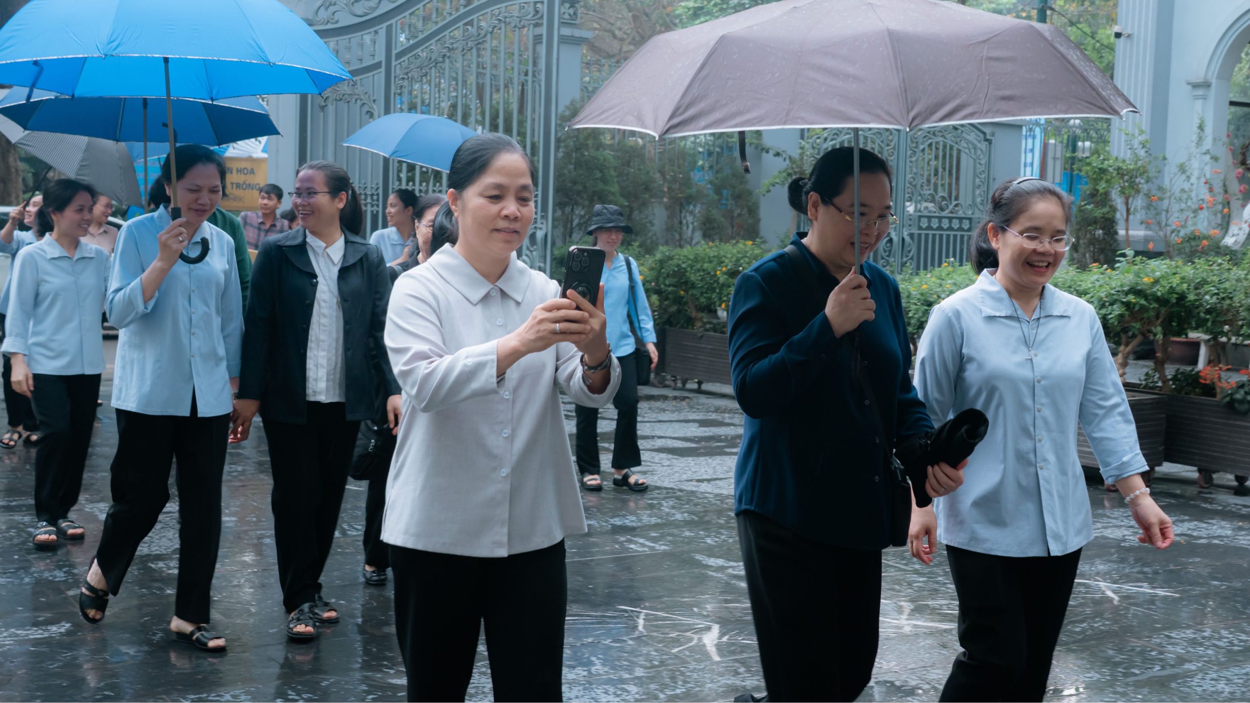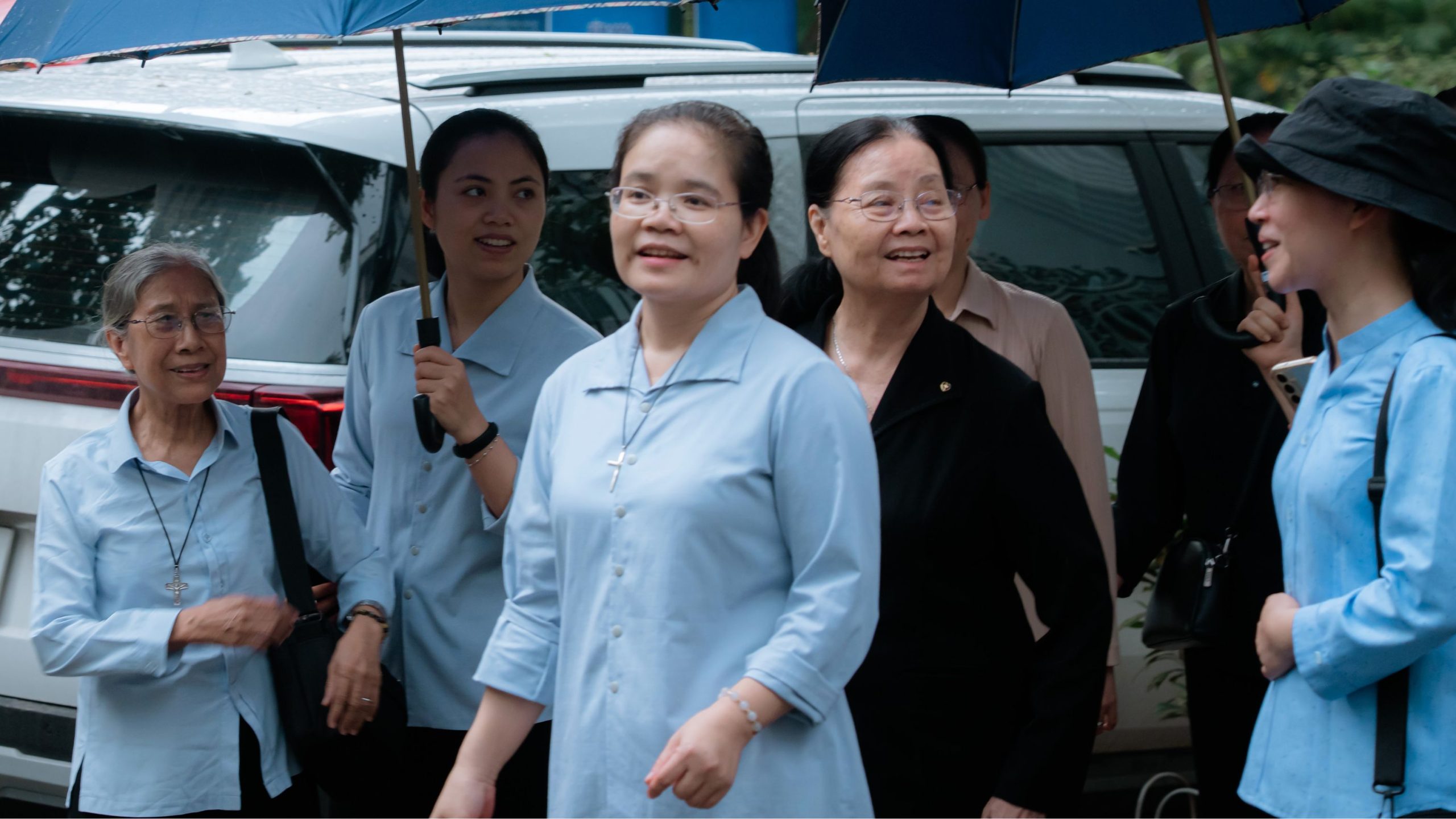 Sau đó, phái đoàn được mời thăm Nhà nguyện của Hội dòng. Trong bầu khí thinh lặng và linh thiêng, quý Sơ cùng dừng lại viếng Thánh Thể Chúa, dâng lên Chúa những tâm tình tạ ơn và phó thác. Nhà nguyện – nơi có sự hiện diện âm thầm nhưng sống động của Chúa Giêsu Thánh Thể – chính là nguồn mạch nuôi dưỡng đời sống thiêng liêng của chị em mỗi ngày, nơi chị em kín múc sức mạnh nội tâm để trung thành với ơn gọi và sứ mạng phục vụ.