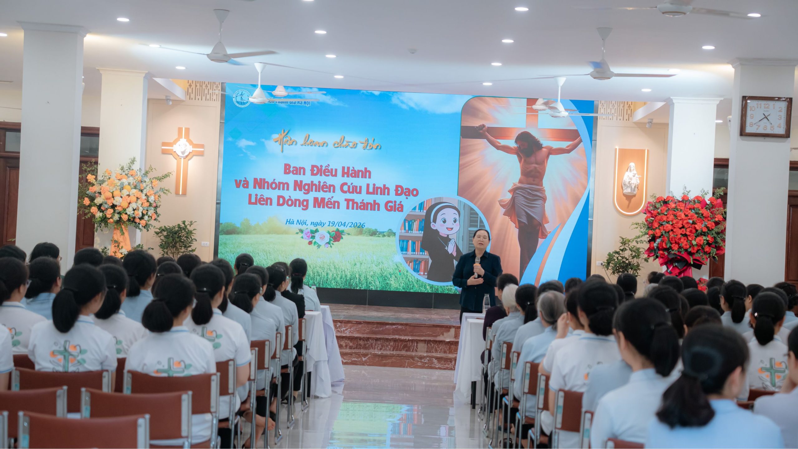 Trong tâm tình hiệp thông của đại gia đình Mến Thánh Giá, vào lúc 16g30, Chúa nhật, ngày 19/4/2026, quý Sơ trong Ban Điều hành và Nhóm Nghiên cứu Linh đạo Mến Thánh Giá đã đến thăm Cộng đoàn Nhà Mẹ – Dòng Mến Thánh Giá Hà Nội. Hiện diện để chào đón phái đoàn có quý chị em trong Ban Điều hành cùng đông đảo chị em trong cộng đoàn. Cuộc gặp gỡ diễn ra trong bầu khí thân tình, ấm áp và tràn đầy niềm vui của tình gia đình thiêng liêng.
