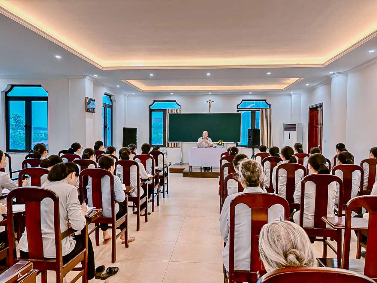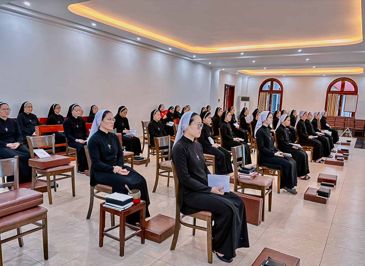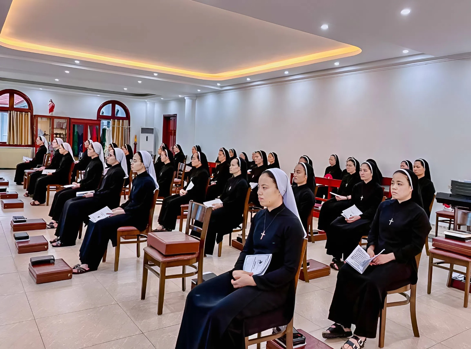 Chiều thứ Bảy, ngày 19 tháng 7 năm 2025, tại Tòa Giám mục Phát Diệm, quý bà chuẩn bị mừng Kim Khánh, 9 chị chuẩn bị mừng Ngân Khánh, cùng 28 chị em trong lớp Hồi tâm – gồm 18 chị sắp tuyên khấn trọn đời và 10 tập sinh – đã quy tụ để bước vào kỳ linh thao kéo dài 10 ngày, như một điểm dừng thiêng liêng trước khi tiếp tục dấn thân sâu hơn trong đời thánh hiến.
