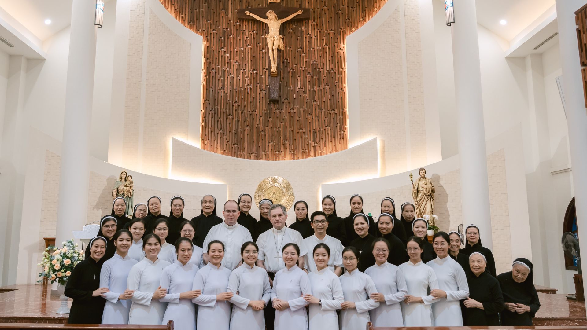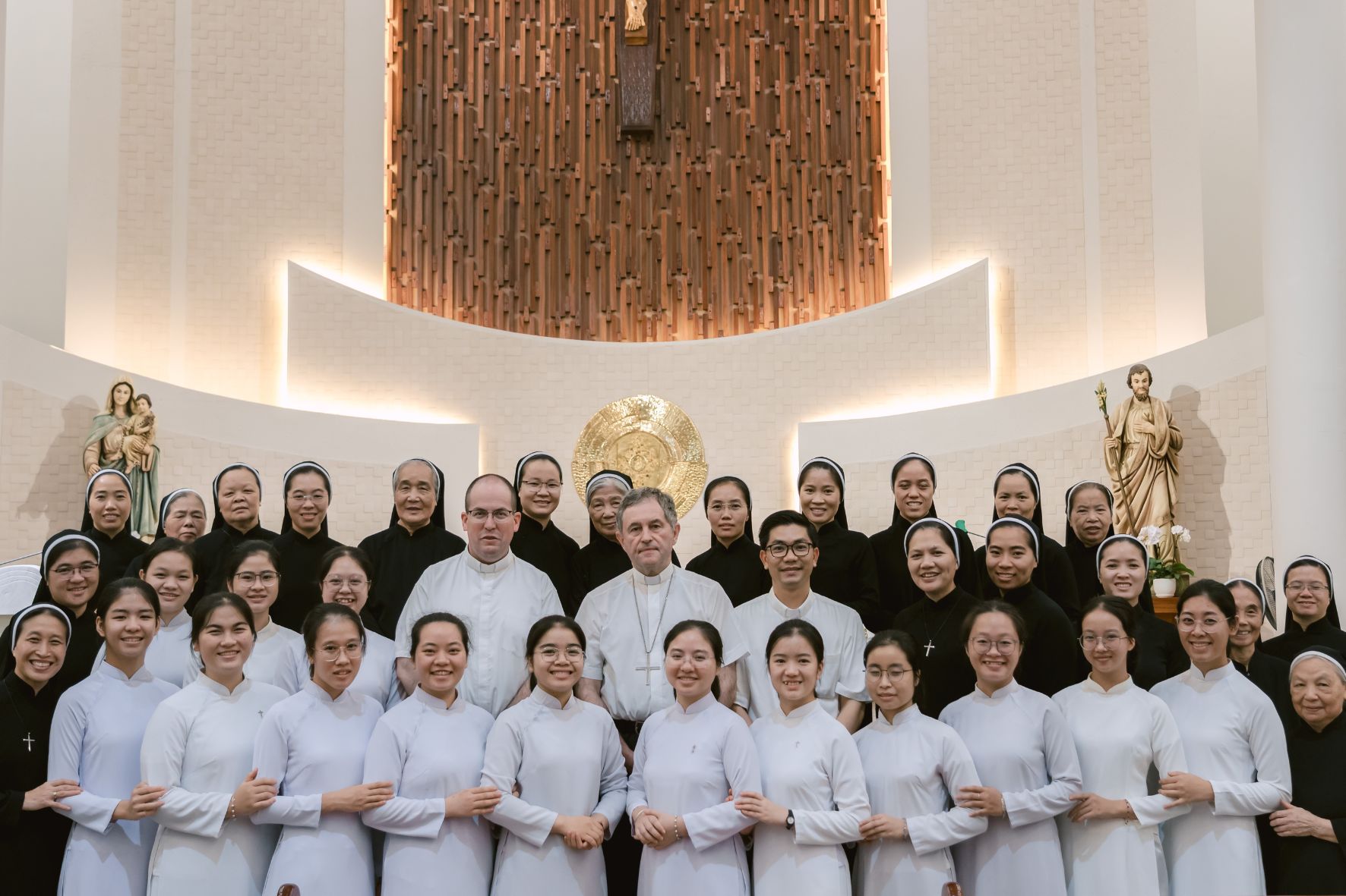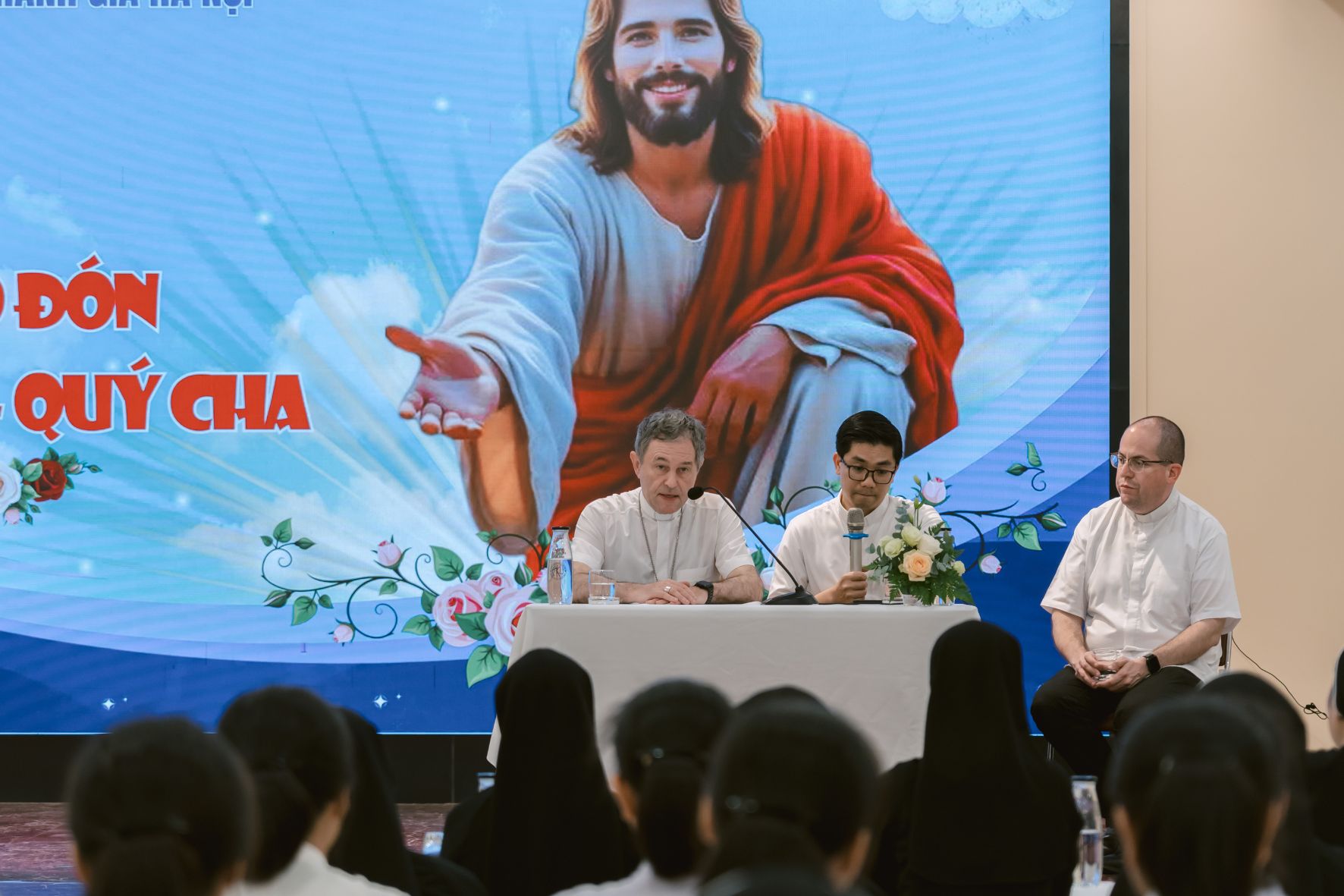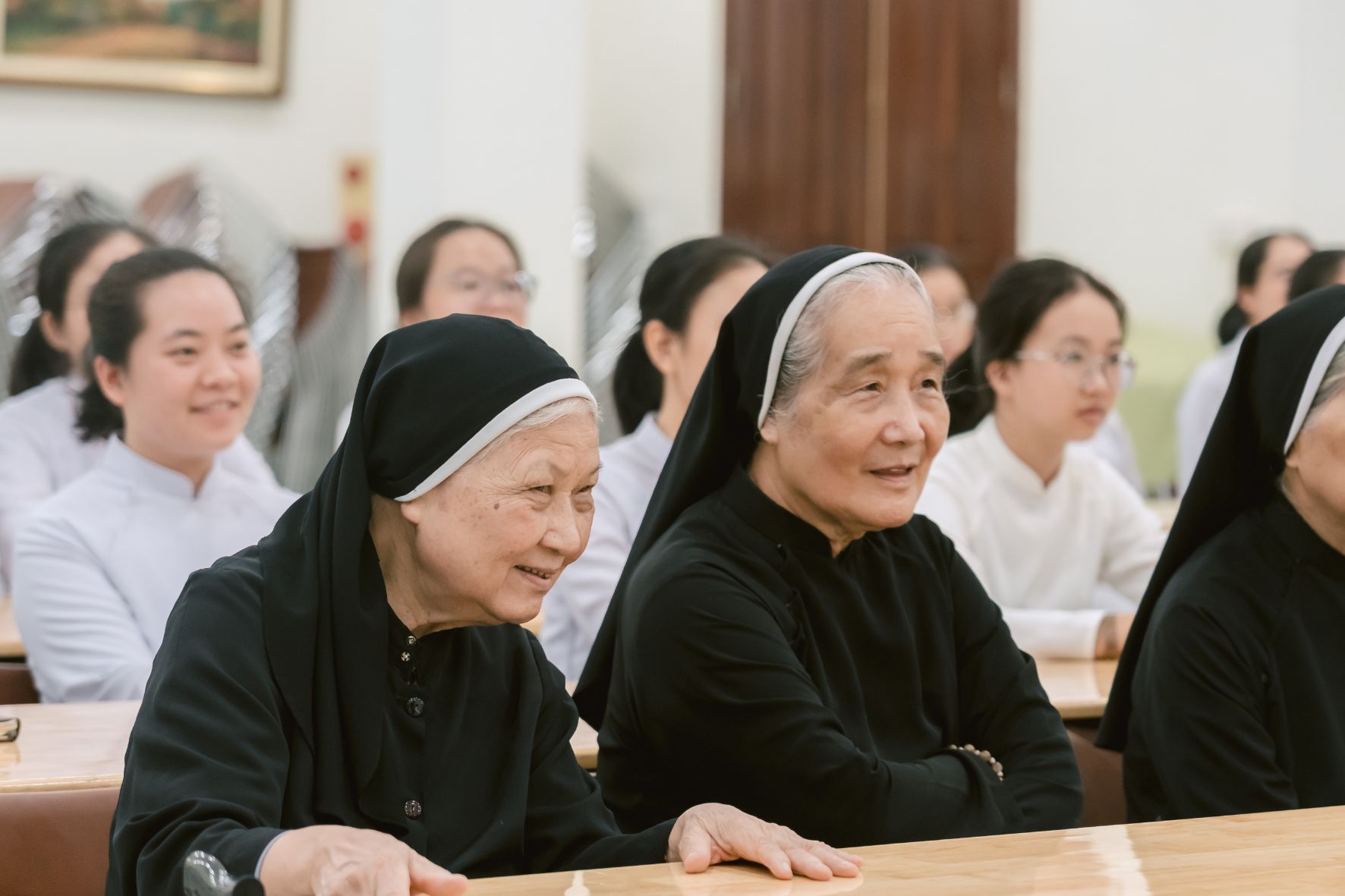 Thay mặt Hội dòng, sơ Ma-ri-a Trương Thị Mùi, Tổng Cố vấn, phụ trách Cộng đoàn Nhà Mẹ, đã dâng lời chào mừng và bày tỏ lòng tri ân sâu sắc tới Đức cha cùng quý cha đã dành thời gian quý báu đến thăm cộng đoàn. Dẫu chỉ diễn ra trong khoảng thời gian ngắn, cuộc gặp gỡ đã để lại những dấu ấn thiêng liêng, chan chứa tình hiệp thông và khơi dậy nhiệt huyết truyền giáo vượt qua mọi biên cương.