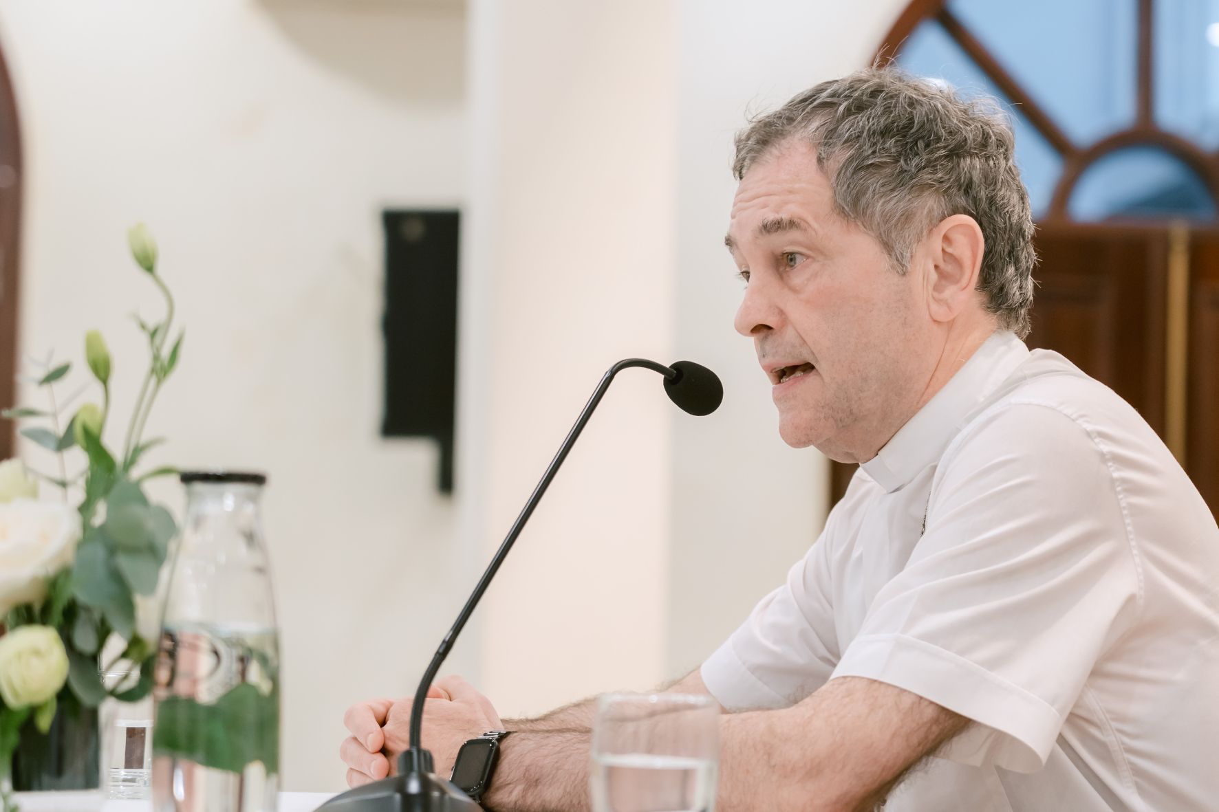 Trong buổi gặp gỡ tại Nhà Mẹ, Đức cha Joseba đã chia sẻ hành trình mục vụ của ngài trên đất Việt, đặc biệt nhấn mạnh đến ý nghĩa thiêng liêng của việc trao tặng thánh tích thánh Valentino Berrio Ochoa. Ngài cũng thân tình khích lệ các nữ tu Mến Thánh Giá tiếp tục hăng say dấn thân trong sứ mạng rao giảng Tin Mừng. Với phong thái gần gũi và dí dỏm, Đức cha còn mời gọi các chị em học tiếng Tây Ban Nha để sẵn sàng bước chân ra đi truyền giáo, bởi – như ngài nói – “ngày xưa, chúng tôi đến Việt Nam rao giảng; giờ đây, đã đến lúc Việt Nam đem Tin Mừng trở lại châu Âu!”