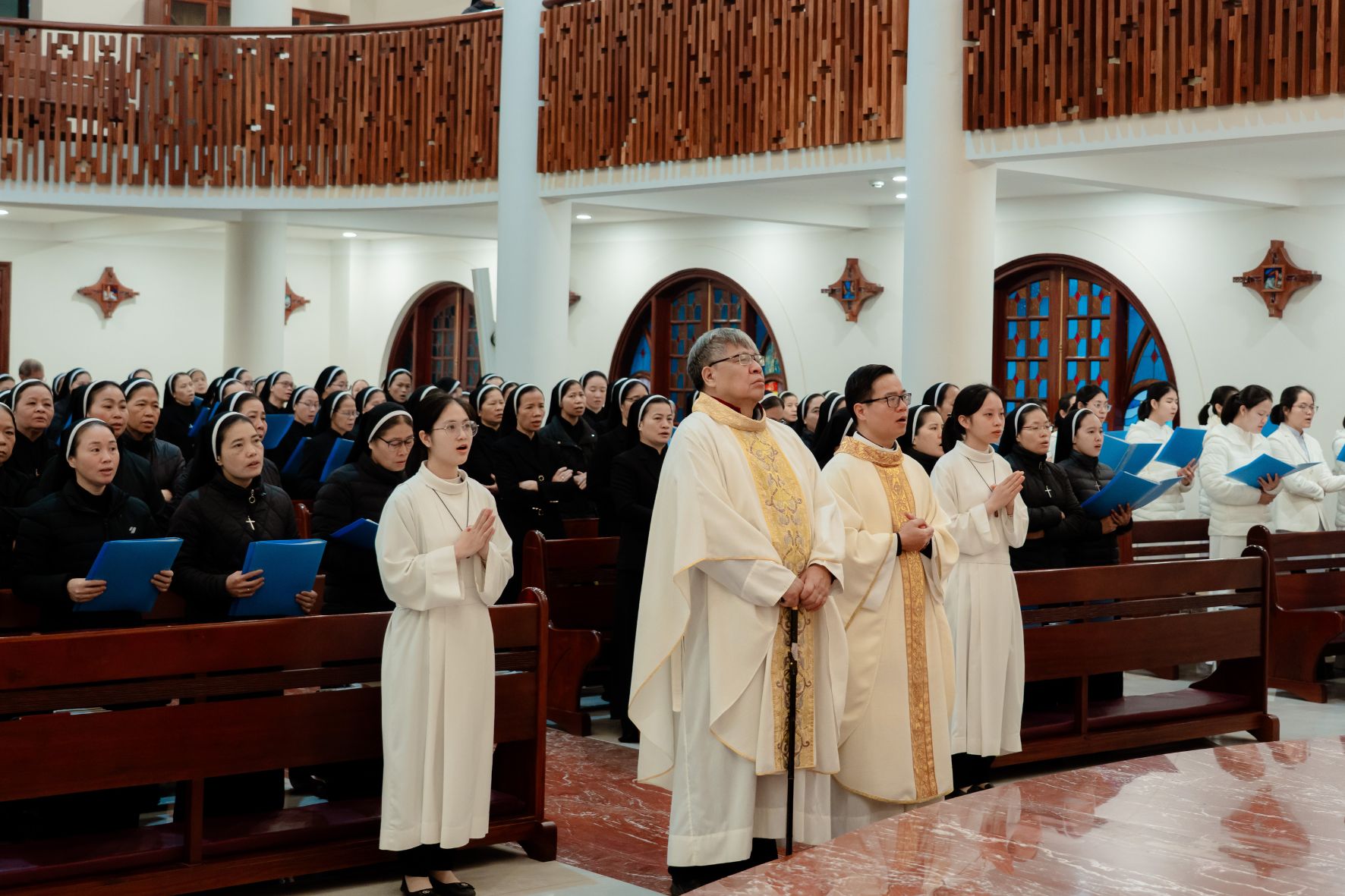 Sáng ngày 11/01/2026, chị em hiệp dâng Thánh lễ Chúa Giê-su chịu Phép Rửa, được cử hành trọng thể tại nhà nguyện Nhà Mẹ do cha Giu-se Tạ Minh Quý chủ tế. Đồng tế với ngài có cha Lu-ca Trần Đức, thuộc tiểu bang New Jersey (Hoa Kỳ) – ân nhân của Hội dòng, nhân dịp cha trở về Việt Nam thực hiện các hoạt động bác ái và ghé thăm chị em. Trong bài giảng, cha Lu-ca đã khai triển sâu sắc hình ảnh Chúa Giê-su khiêm hạ bước xuống dòng sông Gio-đan, qua đó mời gọi chị em noi gương Chúa sống tinh thần khiêm nhường, phục vụ và hiến dâng, đem Lời Chúa đến với mọi người bằng chính đời sống chứng tá âm thầm nhưng bền bỉ.