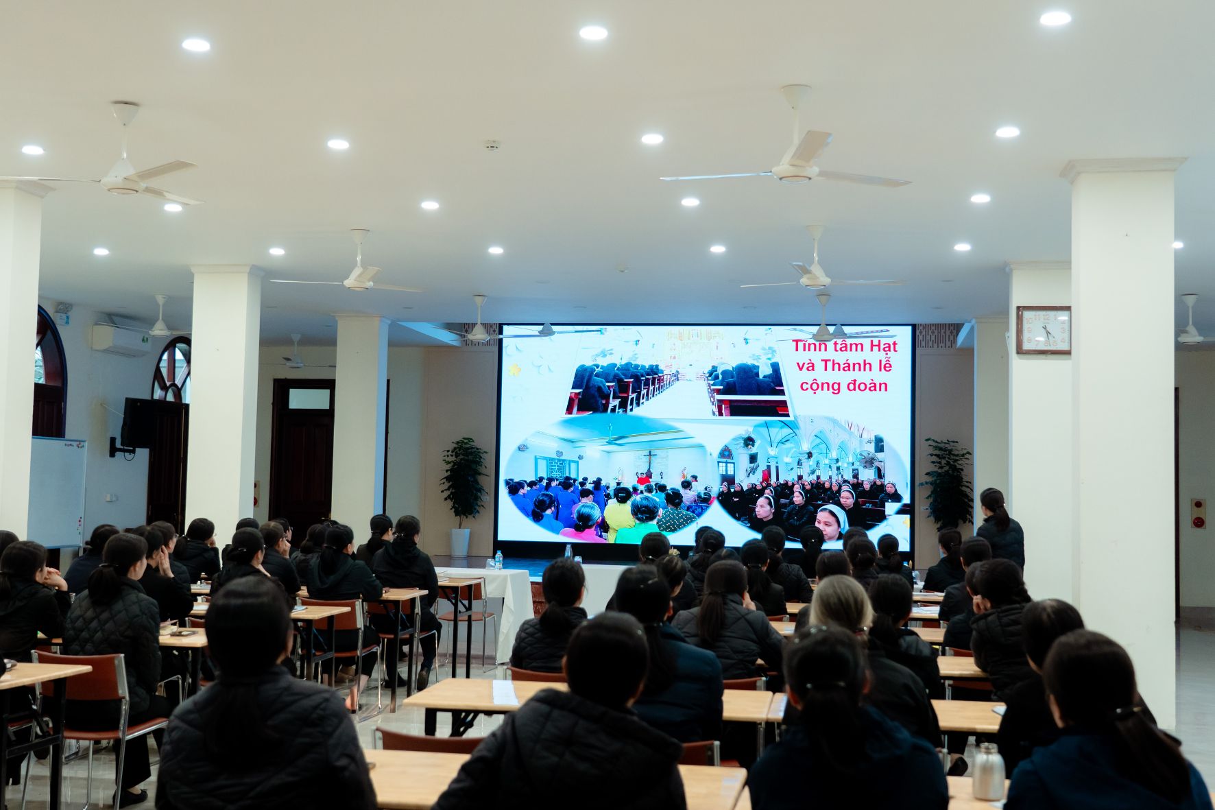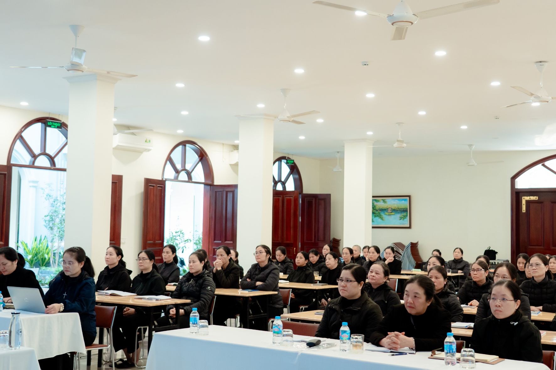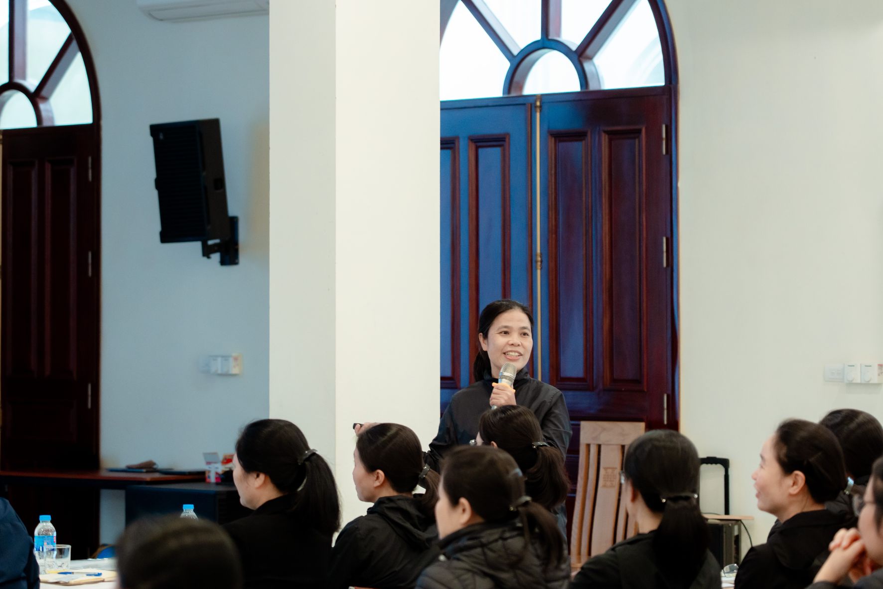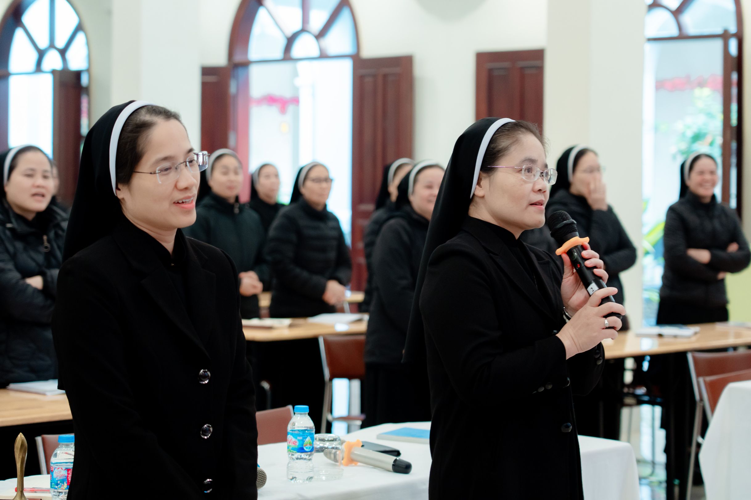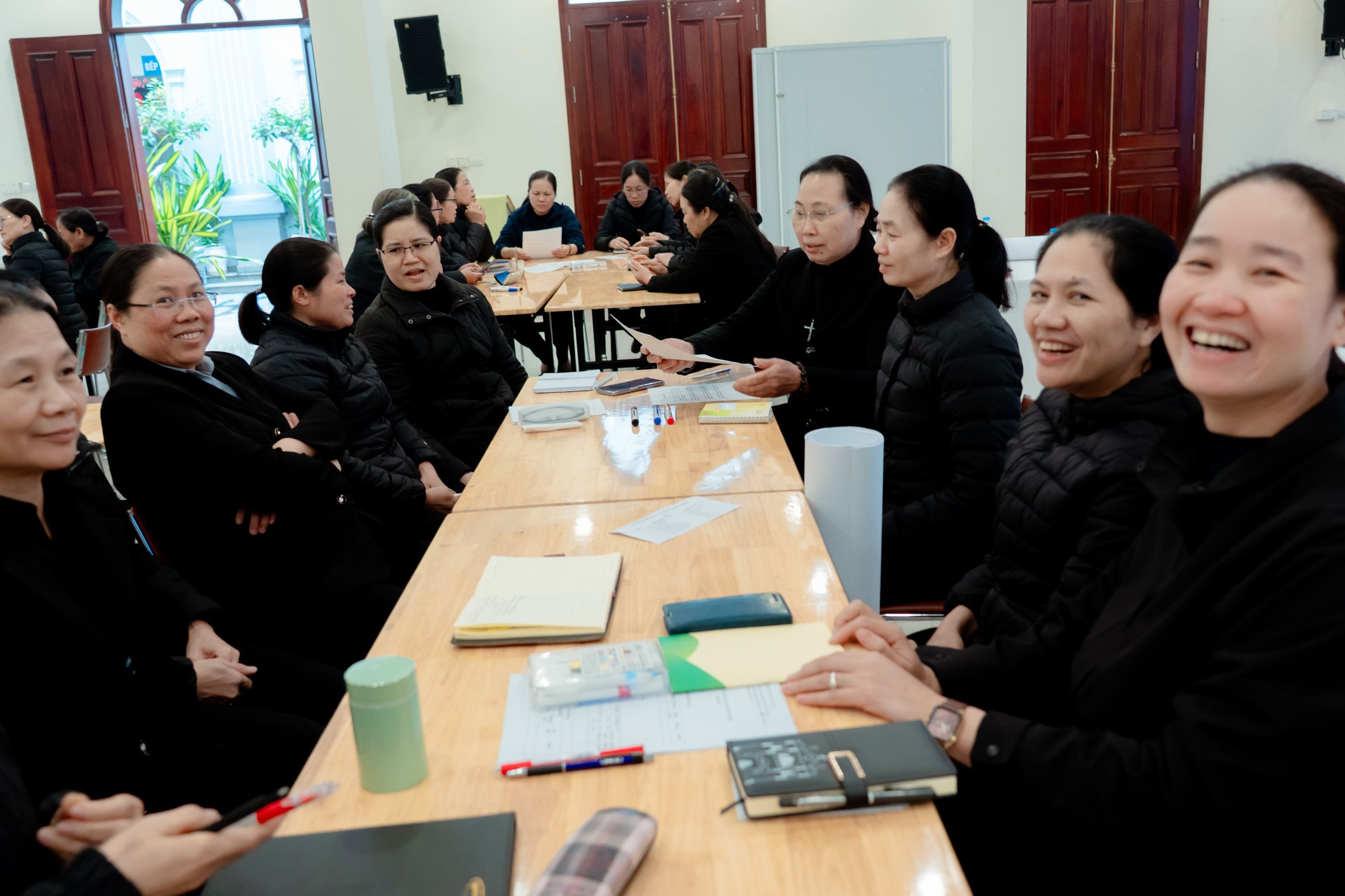 Sau phần chia sẻ của Đức cha, chị em được chia thành các tổ thảo luận để cùng lượng giá những nội dung liên quan đến Thư Chung của Hội đồng Giám mục Việt Nam, định hướng mục vụ của Tổng Giáo phận Hà Nội và định hướng truyền giáo của Hội dòng năm 2026, từ đó đề xuất những phương thế cụ thể, thiết thực và phù hợp với bối cảnh hiện nay.