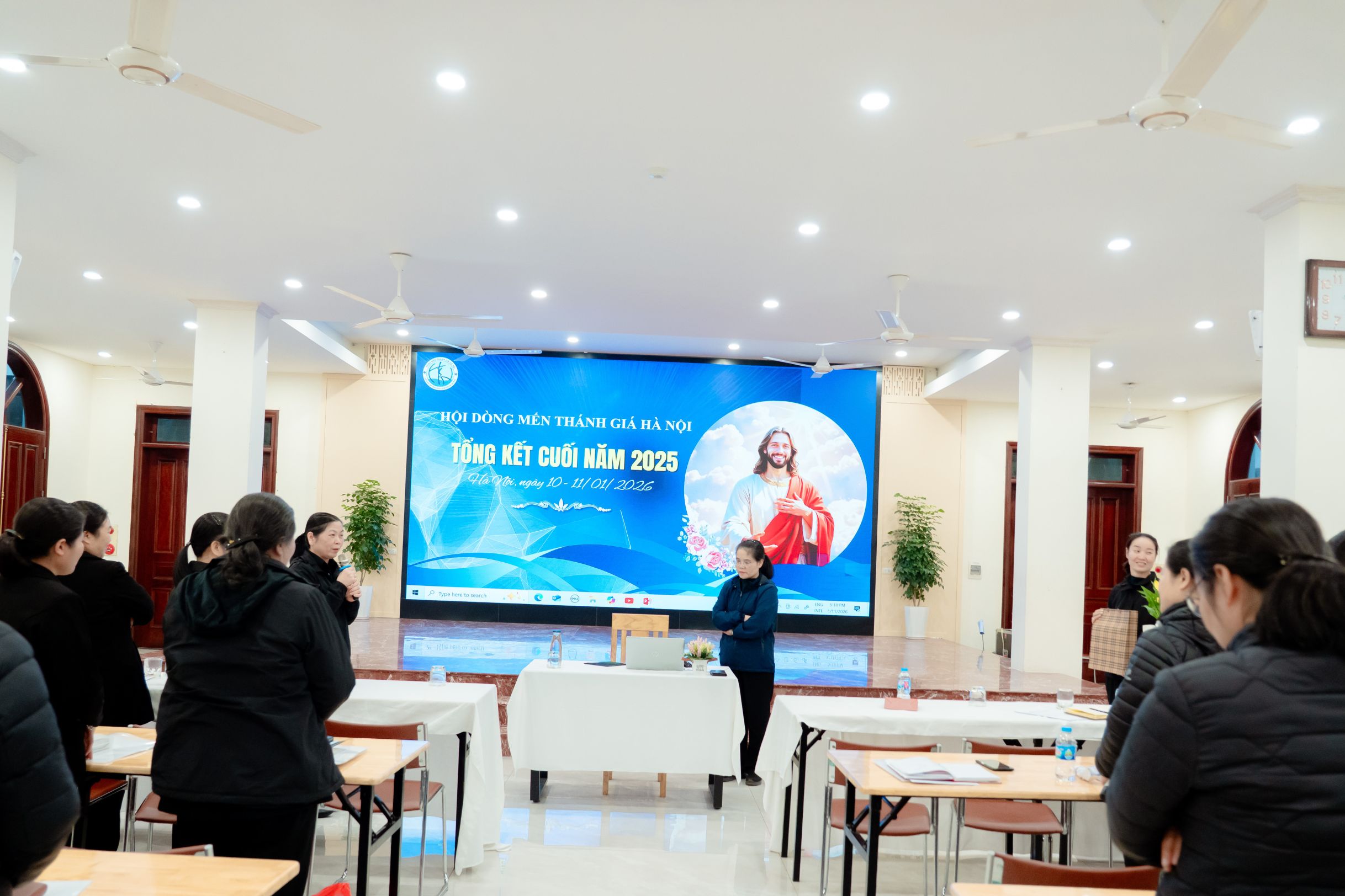 Trong tâm tình tạ ơn Thiên Chúa và bầu khí hiệp thông huynh đệ, trong hai ngày 10 – 11/01/2026, tại Cộng đoàn Nhà Mẹ, Hội dòng Mến Thánh Giá Hà Nội đã long trọng tổ chức buổi tổng kết cuối năm 2025. Hiện diện trong ngày gặp gỡ có quý chị trong Hội đồng Dòng và quý chị phụ trách của 50 cộng đoàn trải dài khắp Tổng Giáo phận Hà Nội. Đây là dịp quý báu để chị em cùng nhau nhìn lại hành trình đã qua, lắng nghe – sẻ chia những thao thức, đồng thời kín múc thêm niềm tin và nghị lực cho chặng đường sứ vụ phía trước.