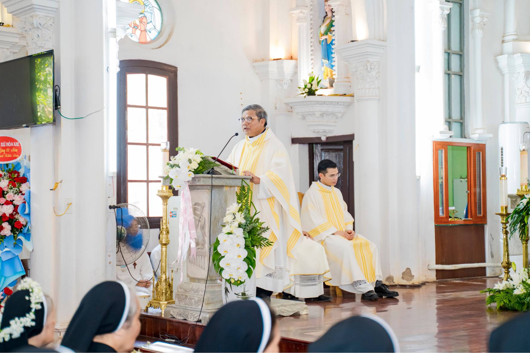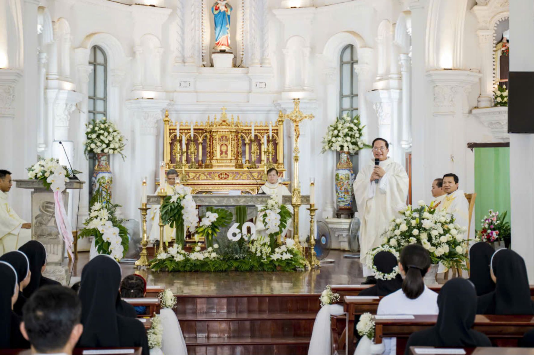 Trong bài giảng lễ, Cha Giu-se Vũ Ngọc Ruẫn – Chính xứ Đông Lao – đã nhấn mạnh đến niềm vui và hạnh phúc của đời thánh hiến. Cha khẳng định: đi tu chính là hồng phúc lớn lao, bởi có Chúa là phần gia nghiệp; dẫu con người yếu đuối, thấp hèn, Chúa vẫn không bao giờ lìa bỏ, nhưng luôn giang rộng vòng tay yêu thương. Cha cũng nêu bật chứng tá sống động nơi Sơ An-na: suốt 60 năm trung thành bước theo Chúa, vượt qua bao thăng trầm, thử thách, Sơ vẫn kiên vững trong ơn gọi và hôm nay trở về quê hương dâng lời tạ ơn Thiên Chúa cùng cộng đoàn. Sáu mươi năm khấn dòng không chỉ là một dấu mốc thời gian, mà còn là khúc ca tạ ơn về tình yêu bất diệt, lòng trung tín và ân sủng của Thiên Chúa dành cho người hiến dâng.