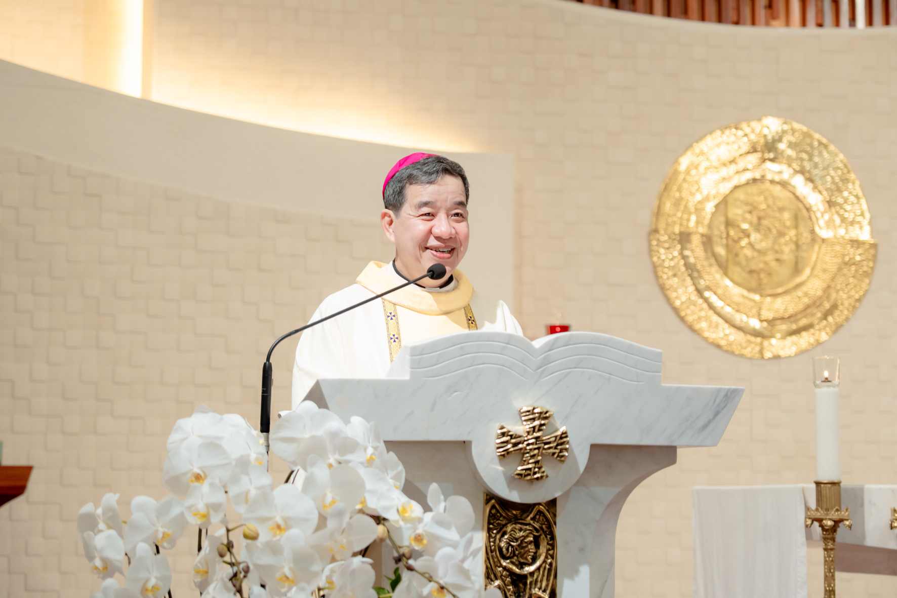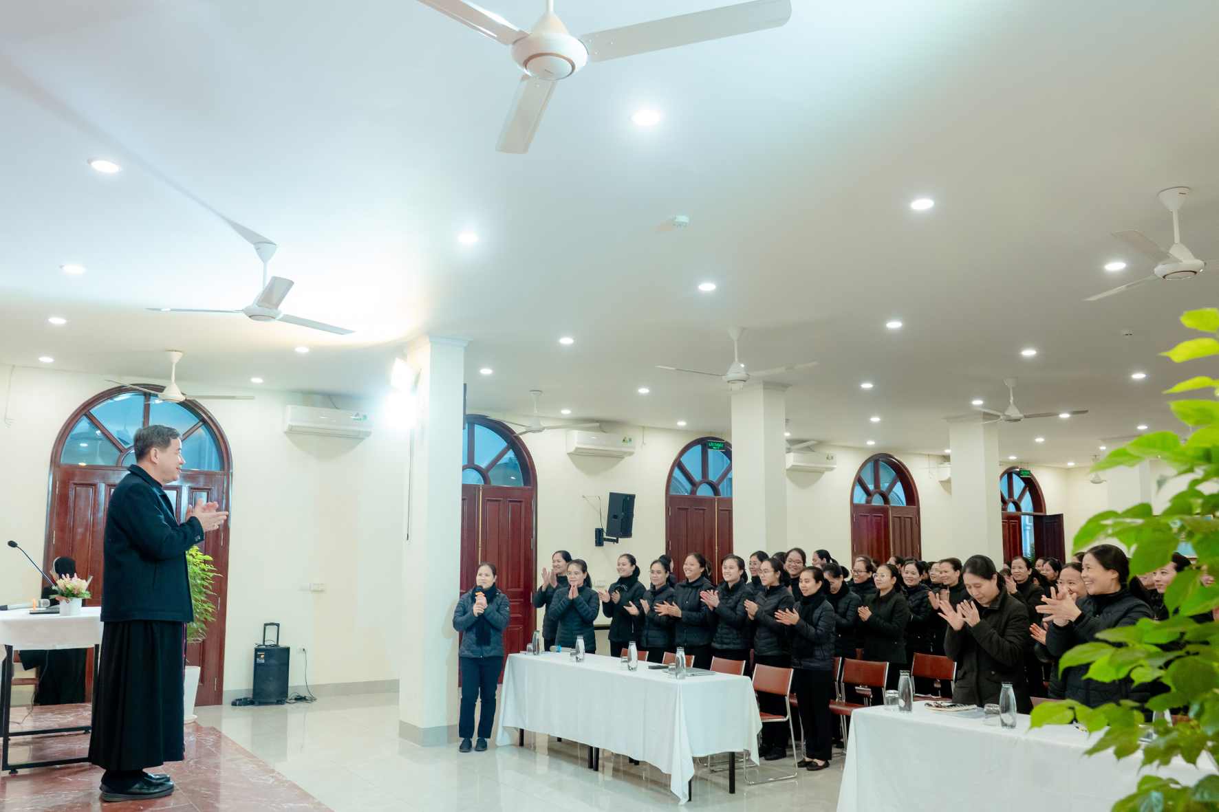 Đúng 8g00, đại diện chị em đến từ hơn 50 cộng đoàn trong Tổng Giáo phận đã hân hoan chào đón Đức Cha Đa-minh Hoàng Minh Tiến, Giám mục Giáo phận Hưng Hóa, Chủ tịch Ủy ban Loan báo Tin Mừng trực thuộc Hội đồng Giám mục Việt Nam. Giáo phận Hưng Hóa là vùng đất truyền giáo rộng lớn, nơi có đông đảo đồng bào dân tộc sinh sống trên dải đất Tây Bắc mênh mông, rất cần những thợ gặt quảng đại dấn thân cho cánh đồng Tin Mừng.