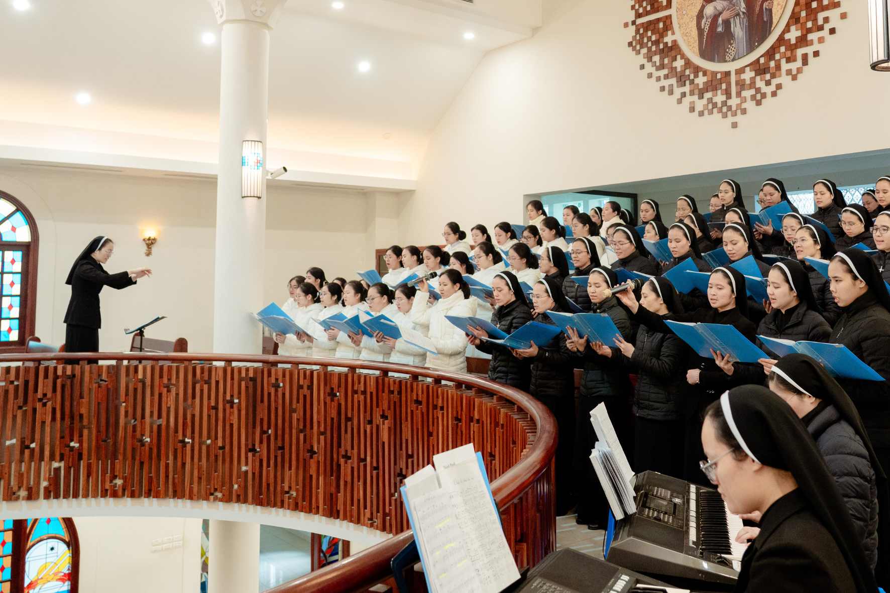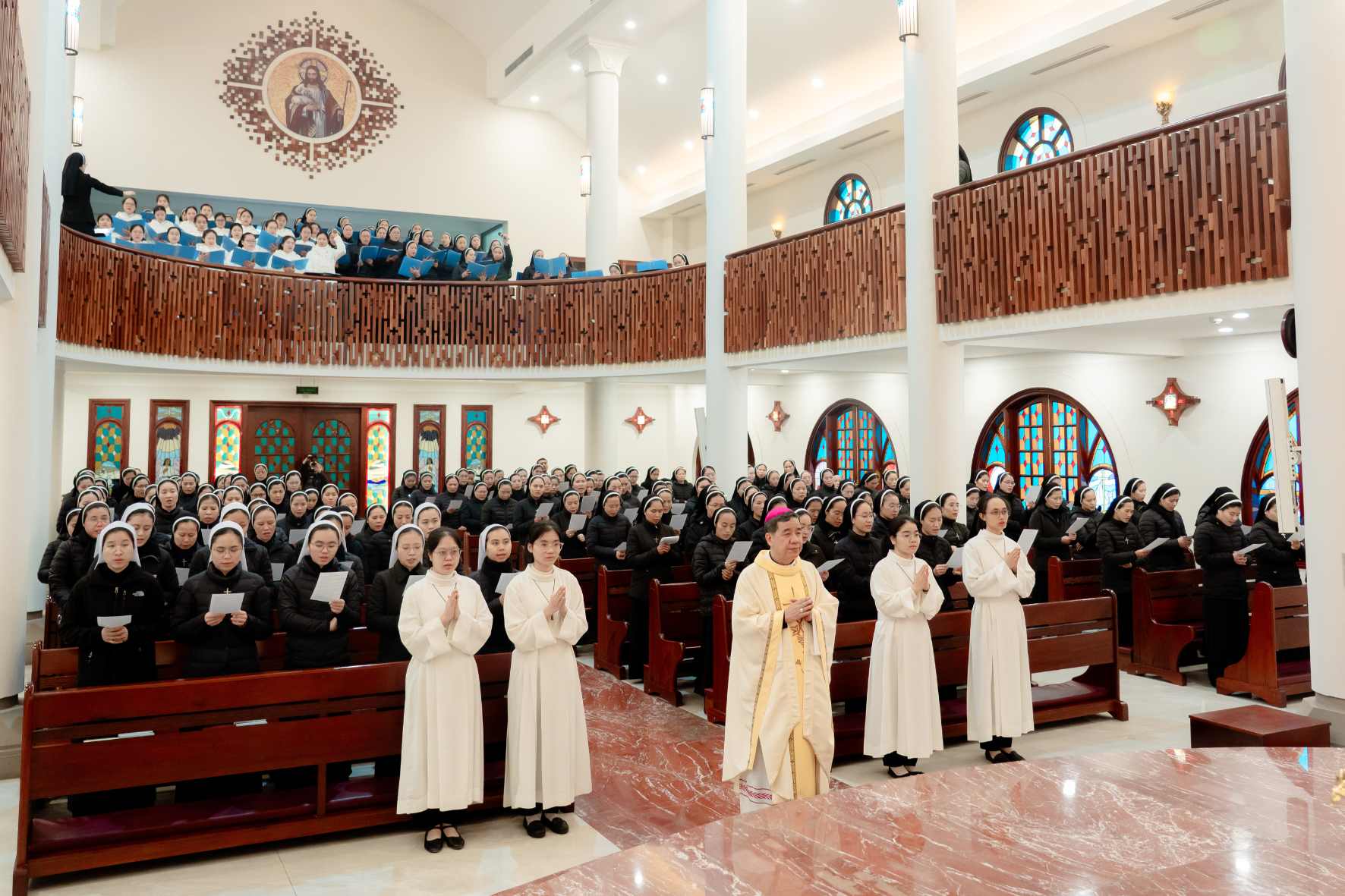 Thứ Bảy, ngày 24/01/2026, trong niềm vui hân hoan mừng lễ Thánh Phao-lô Tông đồ trở lại – Quan Thầy Ban Sứ vụ Hội Dòng Mến Thánh Giá Hà Nội (gồm Ban Giáo dục – Mục vụ và Ban Loan báo Tin Mừng), gần 300 chị em từ khắp các cộng đoàn đã quy tụ về Nhà Mẹ sau những ngày miệt mài thi hành sứ vụ tông đồ. Cuộc hội ngộ không chỉ là dịp gặp gỡ, sẻ chia huynh đệ, mà còn là thời khắc lắng đọng để cùng nhau kín múc nguồn lửa nhiệt thành truyền giáo nơi mẫu gương Thánh Phao-lô.