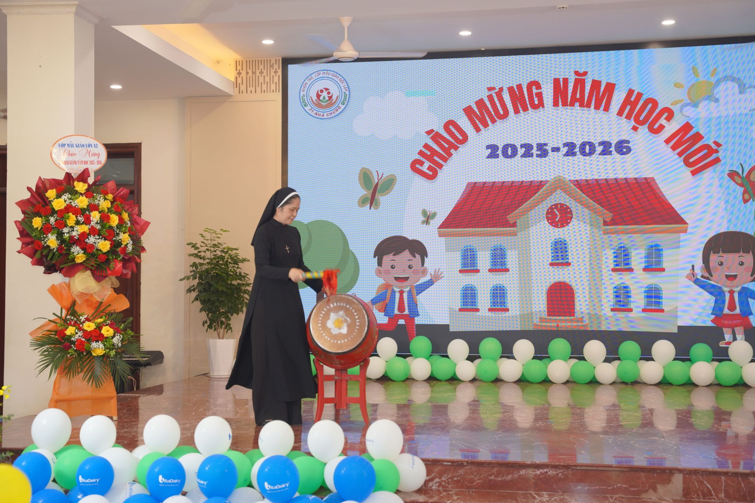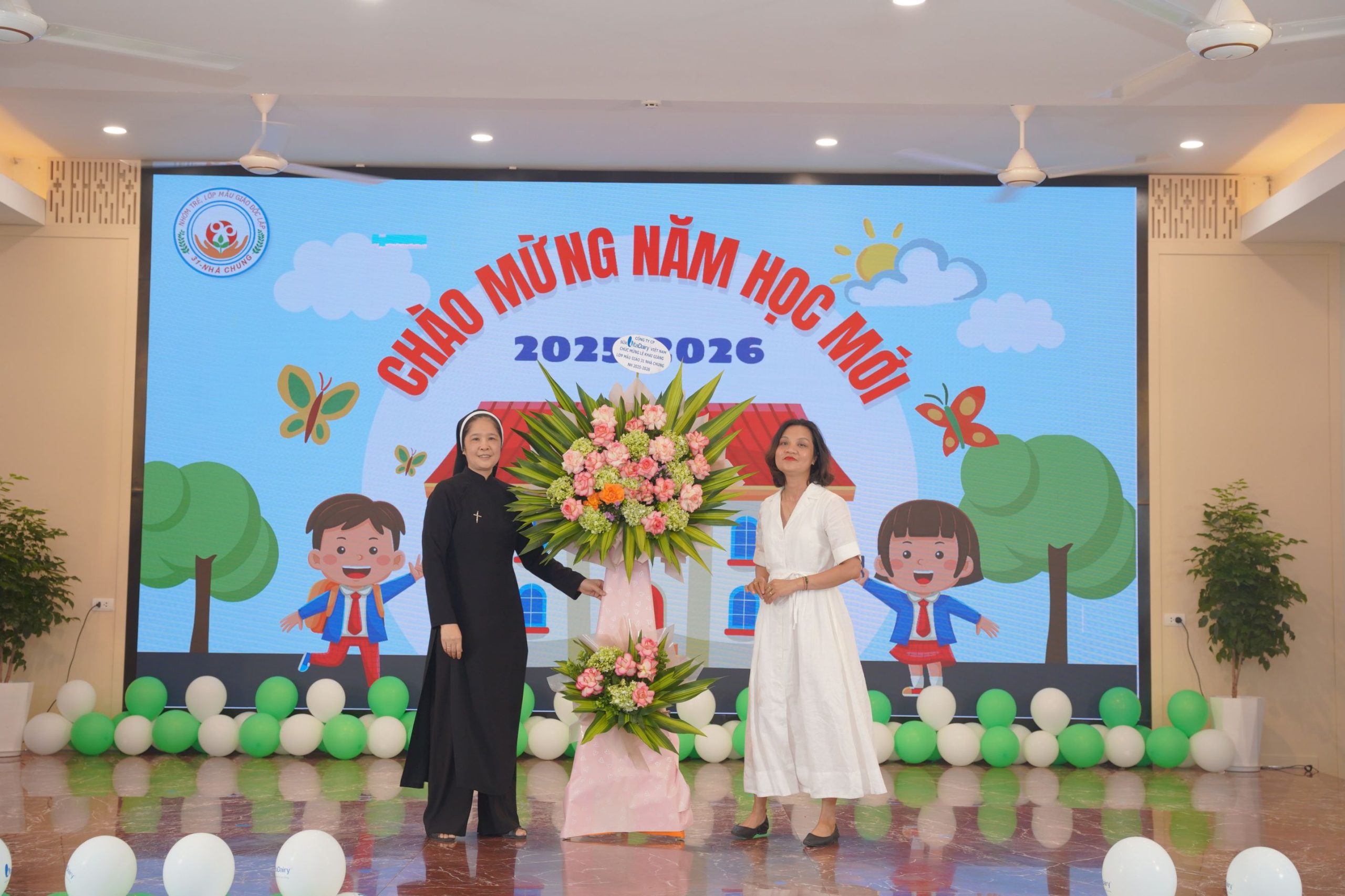 Buổi lễ vinh dự có sự hiện diện của Sơ Tê-rê-xa Bùi Thị Hồng – Phụ trách nhóm trẻ; Sơ Ma-ri-a Trương Thị Mùi – Phụ trách Cộng đoàn Nhà Mẹ; Sơ Ma-ri-a Nguyễn Thị Hằng – Trưởng Ban Mục vụ – Giáo dục; quý Sơ đại diện các cộng đoàn, quý Sơ phụ trách các lớp và nhiều công tác trong nhà trường; cùng đông đảo quý phụ huynh và toàn thể các em học sinh thân yêu. Sự hiện diện thân tình và trang trọng ấy đã làm nên một khởi đầu đầy ý nghĩa cho năm học mới.
