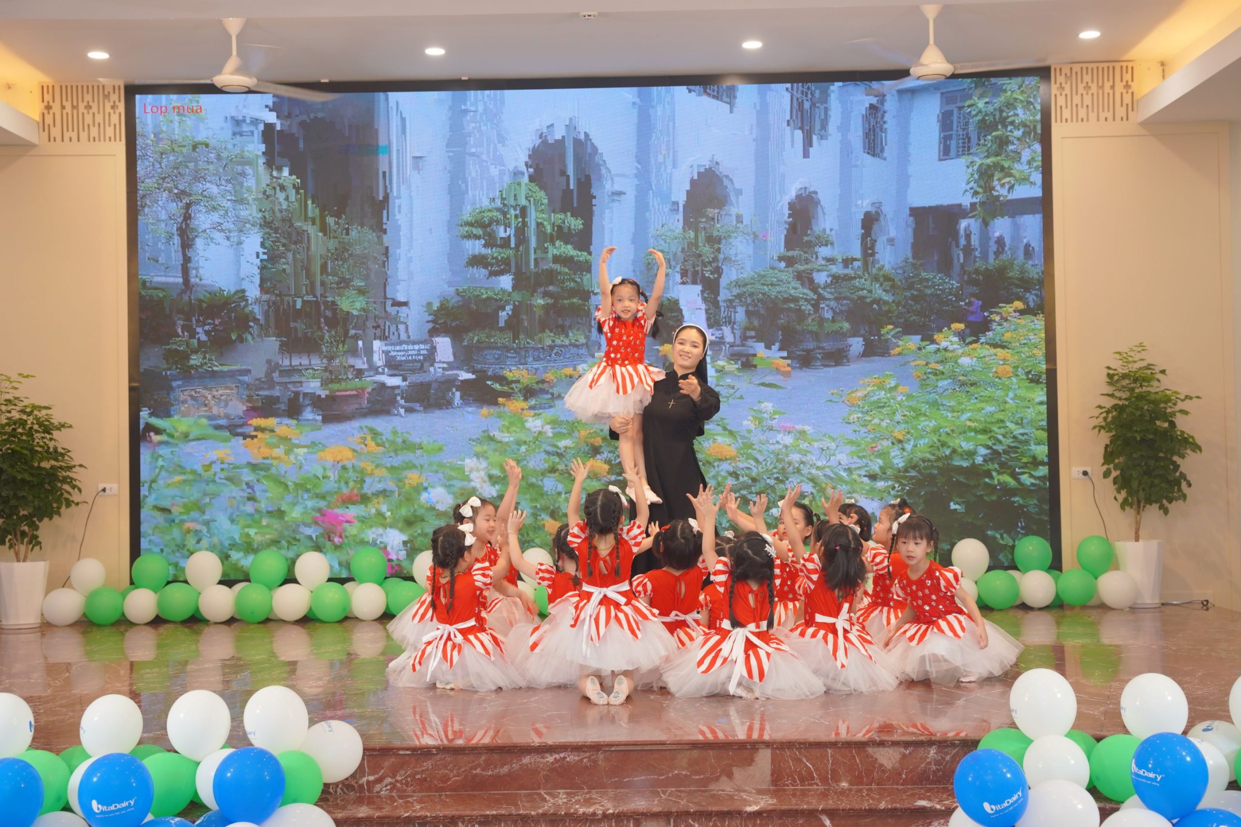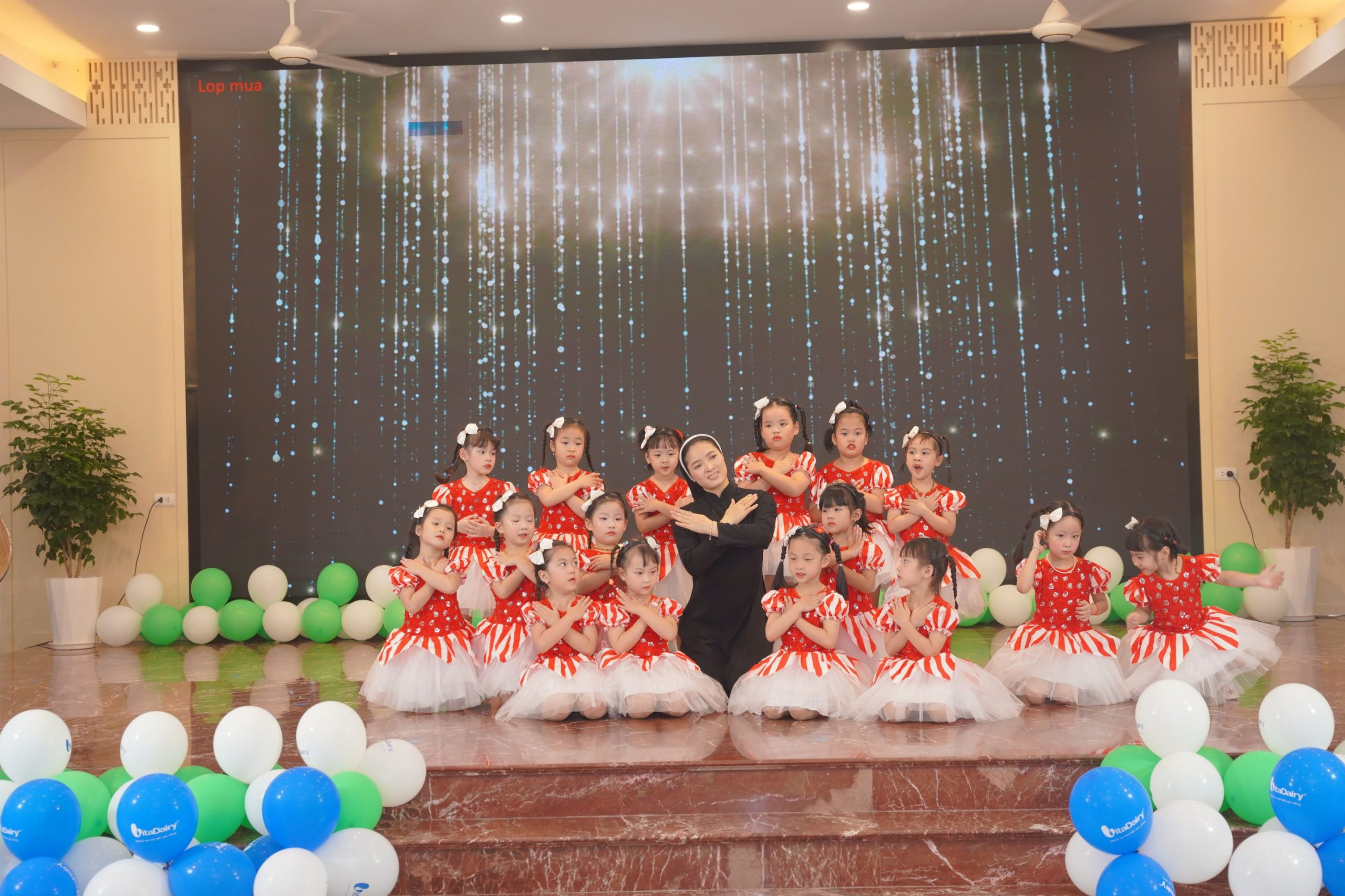 Khép lại buổi lễ là tiết mục múa “Liên khúc Bài ca người giáo viên” do các cô giáo trong trường thể hiện. Với những bước múa uyển chuyển, chan chứa cảm xúc, tiết mục đã diễn tả trọn vẹn tinh thần tận tụy, lòng yêu nghề và khát vọng hiến dâng trong sứ mạng giáo dục trẻ thơ.