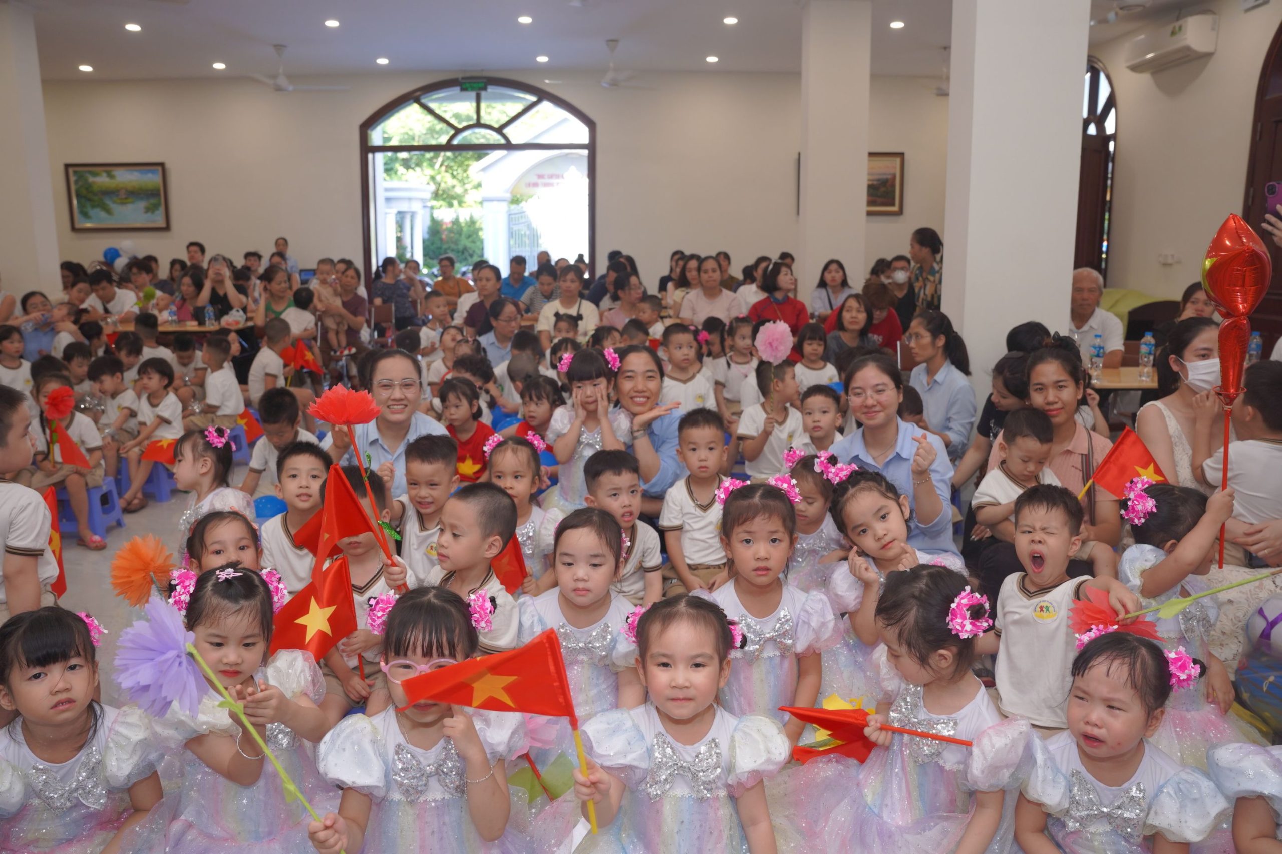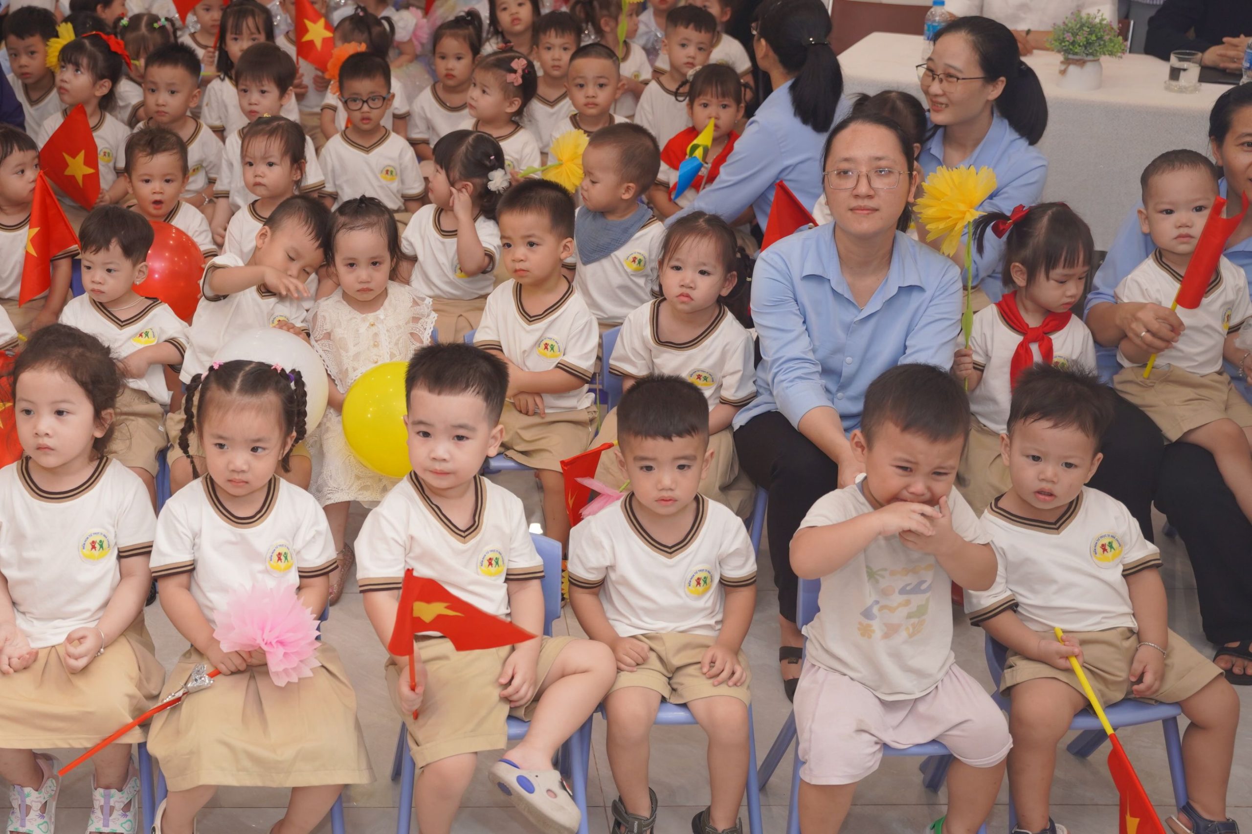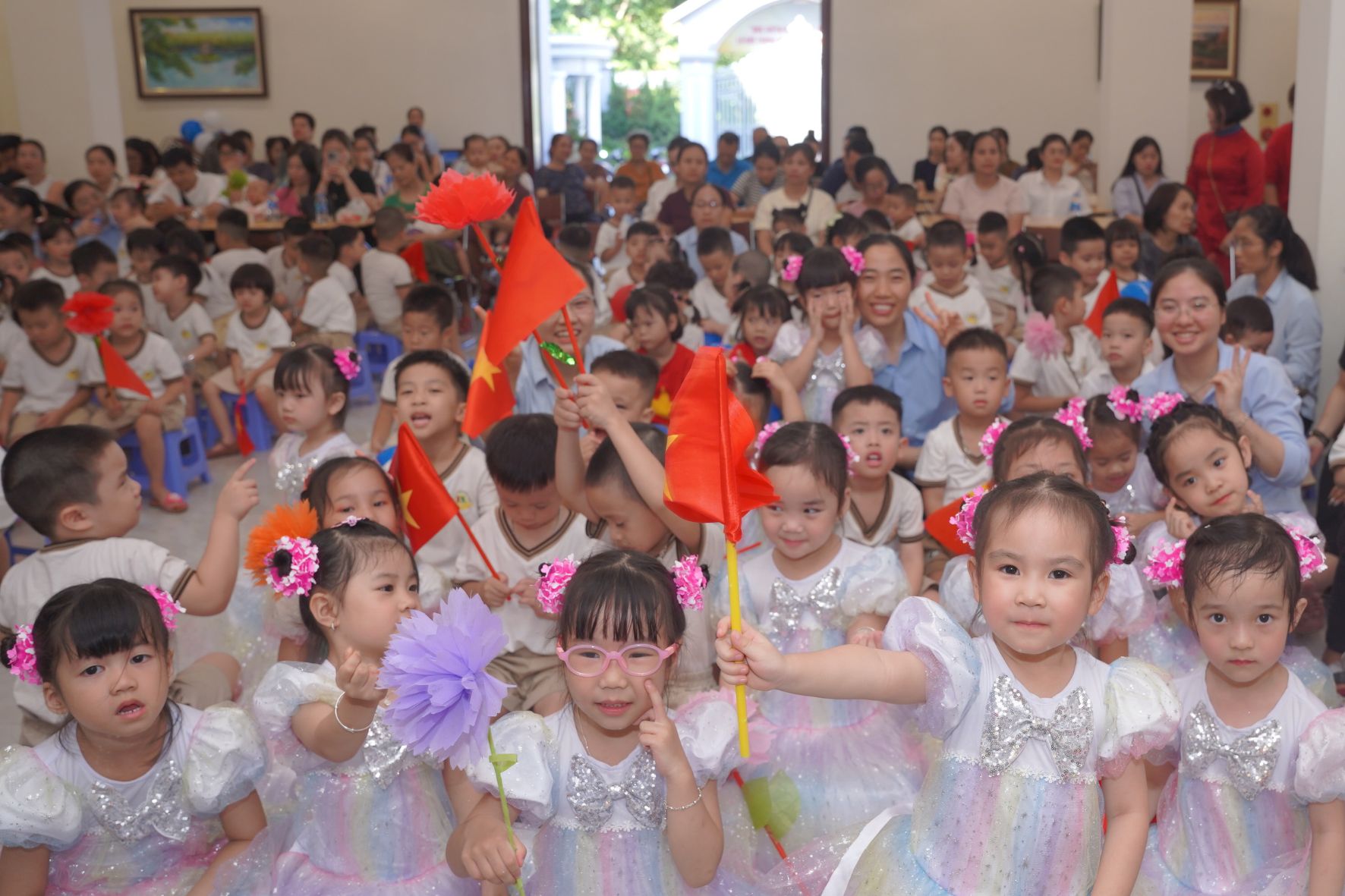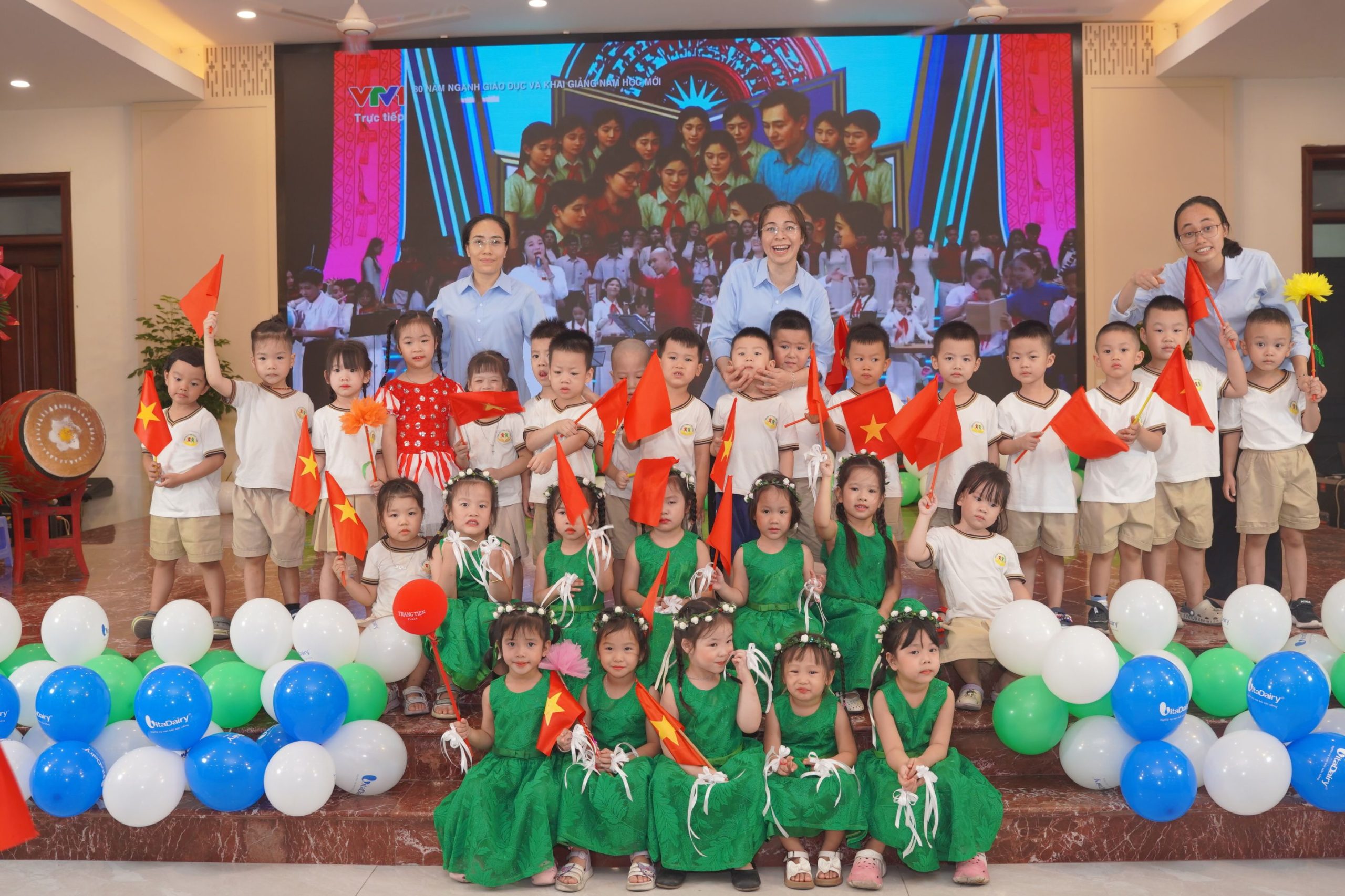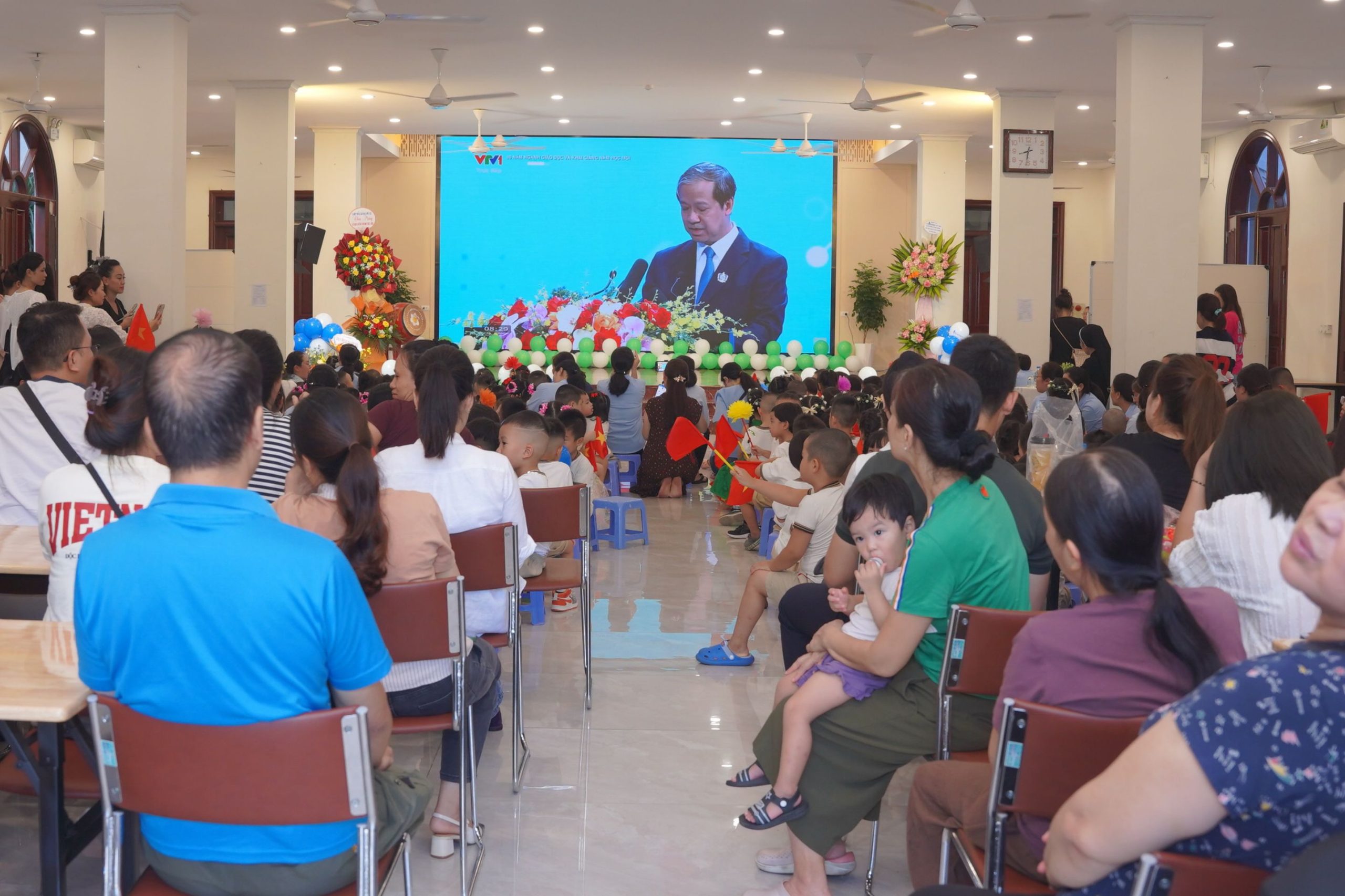 Trước khi chính thức bước vào chương trình, các cô giáo, quý phụ huynh cùng toàn thể các bé đã hòa mình trong bầu khí khai giảng của hàng triệu học sinh trên khắp cả nước, được truyền hình trực tuyến. Khoảnh khắc thiêng liêng và đầy tự hào ấy đã kết nối niềm vui của nhà trường với niềm vui chung của toàn dân tộc trong ngày hội toàn dân đưa trẻ đến trường.