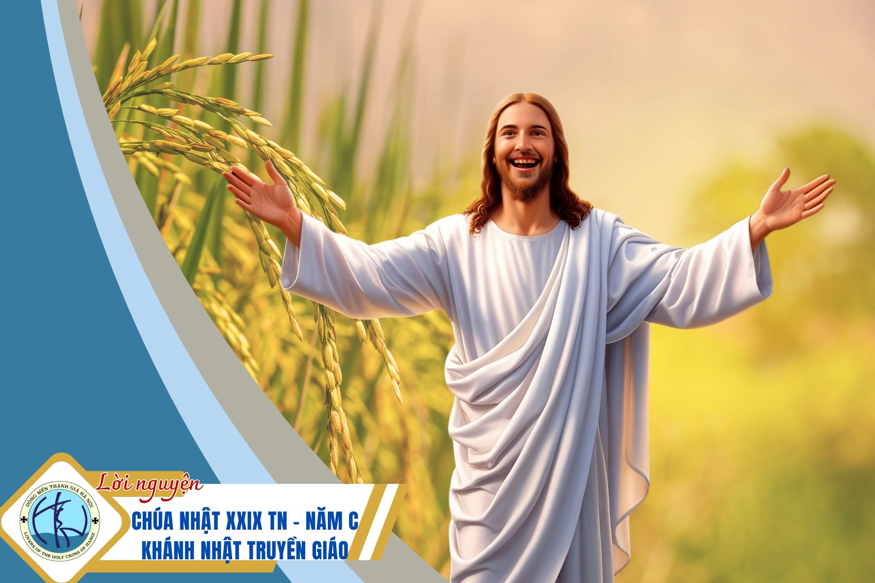 Chủ tế: Lạy Thiên Chúa toàn năng hằng hữu, Chúa đã sai Con Chúa đến trần gian để trao ban ơn cứu độ và mời gọi chúng con tiếp tục sứ mạng của Người. Xin làm cho mọi Kitô hữu ý thức và nhiệt thành dấn thân loan báo Tin Mừng, tùy theo hoàn cảnh và khả năng Chúa ban. Chúng con cầu xin nhờ Đức Kitô, Chúa chúng con.