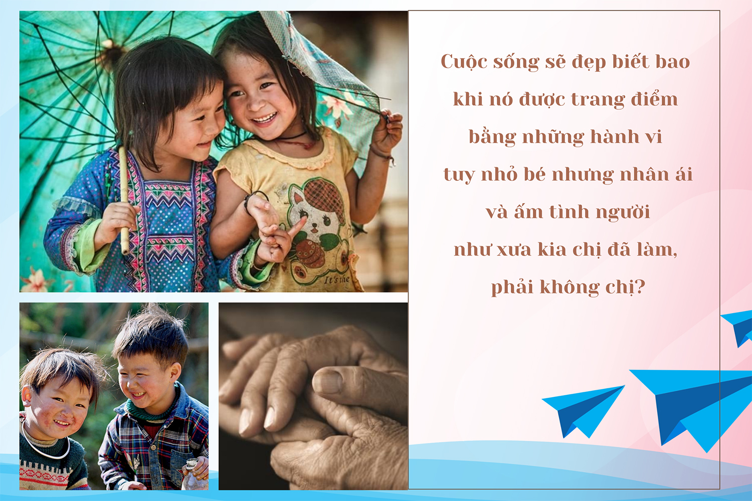 Chị Tê-rê-sa ơi! Đất nước Việt Nam mà chị đã từng ước ao đến thăm đang bị thiên tai hoành hành một cách trầm trọng lắm. Nó hủy hoại con người, kinh tế và mọi khía cạnh của cuộc sống. Sự chết và sự sống chỉ cách nhau trong gang tấc. Nhiều người thiếu lương thực, thiếu tình thương, thiếu sự chia sẻ. Hơn ai hết, lúc này đây cần lắm những tâm hồn, những tấm lòng quảng đại để đem niềm vui, ý nghĩa đến cho cuộc sống của nhau. Có khi là những suất cơm, tủ bánh, thùng nước miễn phí, những siêu thị hay những cửa hàng 0 đồng, những cây ATM gạo miễn phí,… Cũng có khi chỉ là một khúc bánh mì nhỏ để lót lòng đứa trẻ lang thang hè phố, một bàn tay siết nhẹ để tỏ lòng cảm thông, một lời động viên cho người nản chí, một nụ cười thân thiện cho người đang buồn lòng,… Cuộc sống sẽ đẹp biết bao khi nó được trang điểm bằng những hành vi tuy nhỏ bé nhưng nhân ái và ấm tình người như xưa kia chị đã làm phải không chị? Ước mong rằng, những nghĩa cử đơn sơ nhưng chứa đầy tình yêu của chị sẽ là gương soi cho mỗi người chúng em trong hoàn cảnh lúc này.