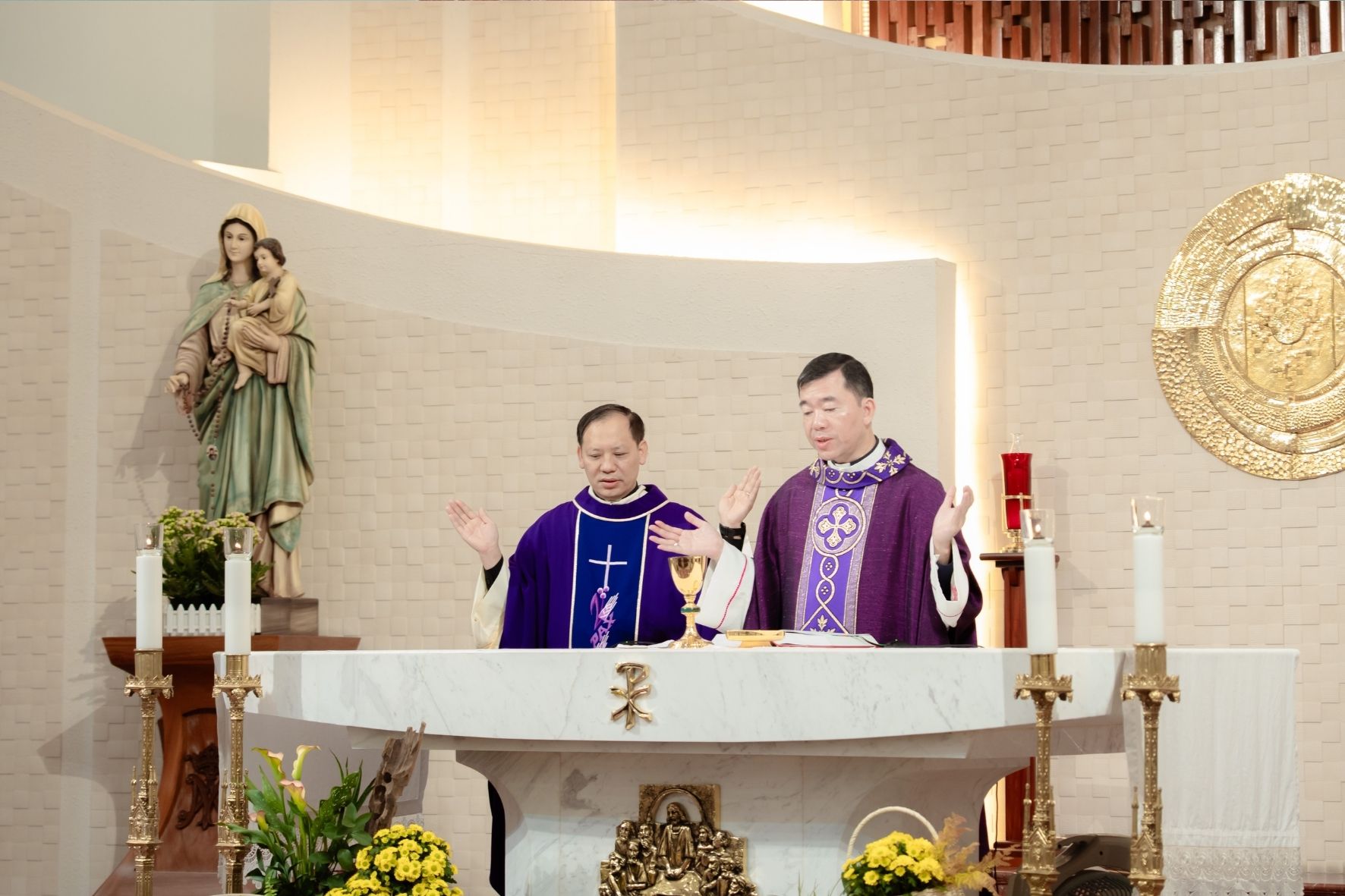 Thánh lễ được cử hành cách long trọng do Đức cha Phụ tá Giuse Vũ Công Viện chủ tế, cùng đồng tế có cha Tuyên úy Giuse Vũ Quang Học.