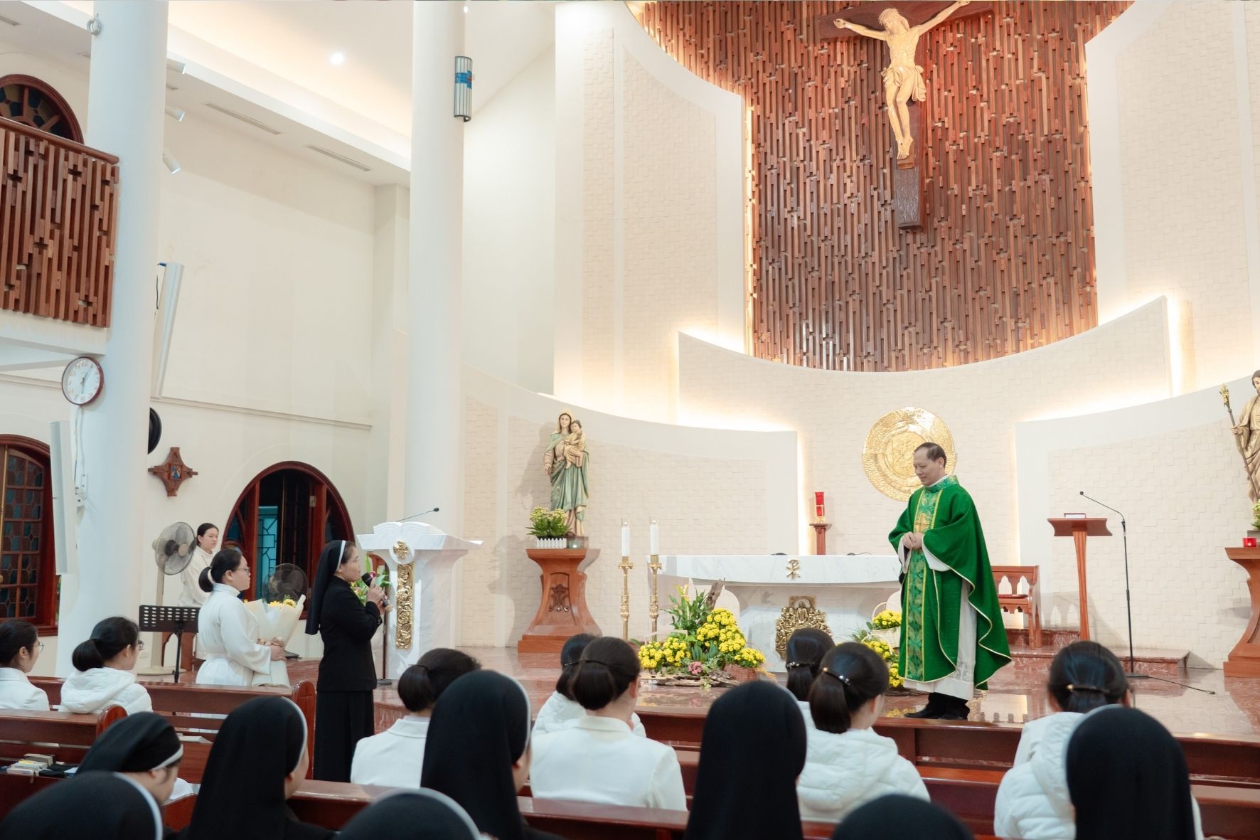 Kết thúc Thánh lễ, chị Tổng Phụ trách Ma-ri-a Đỗ Thị Như Hoa, đại diện cho toàn thể chị em trong Hội dòng, đã bày tỏ niềm vui và lòng tri ân trước sự hiện diện và đồng hành của cha Giu-se trong sứ vụ tuyên úy. Chị gửi lời chúc mừng và cầu chúc cha luôn tràn đầy ơn Chúa, sức khỏe và sự khôn ngoan, để chu toàn tốt đẹp sứ mạng được Hội Thánh trao phó, trở nên người mục tử đồng hành, nâng đỡ và hướng dẫn Hội dòng trong đời sống thiêng liêng và sứ vụ.