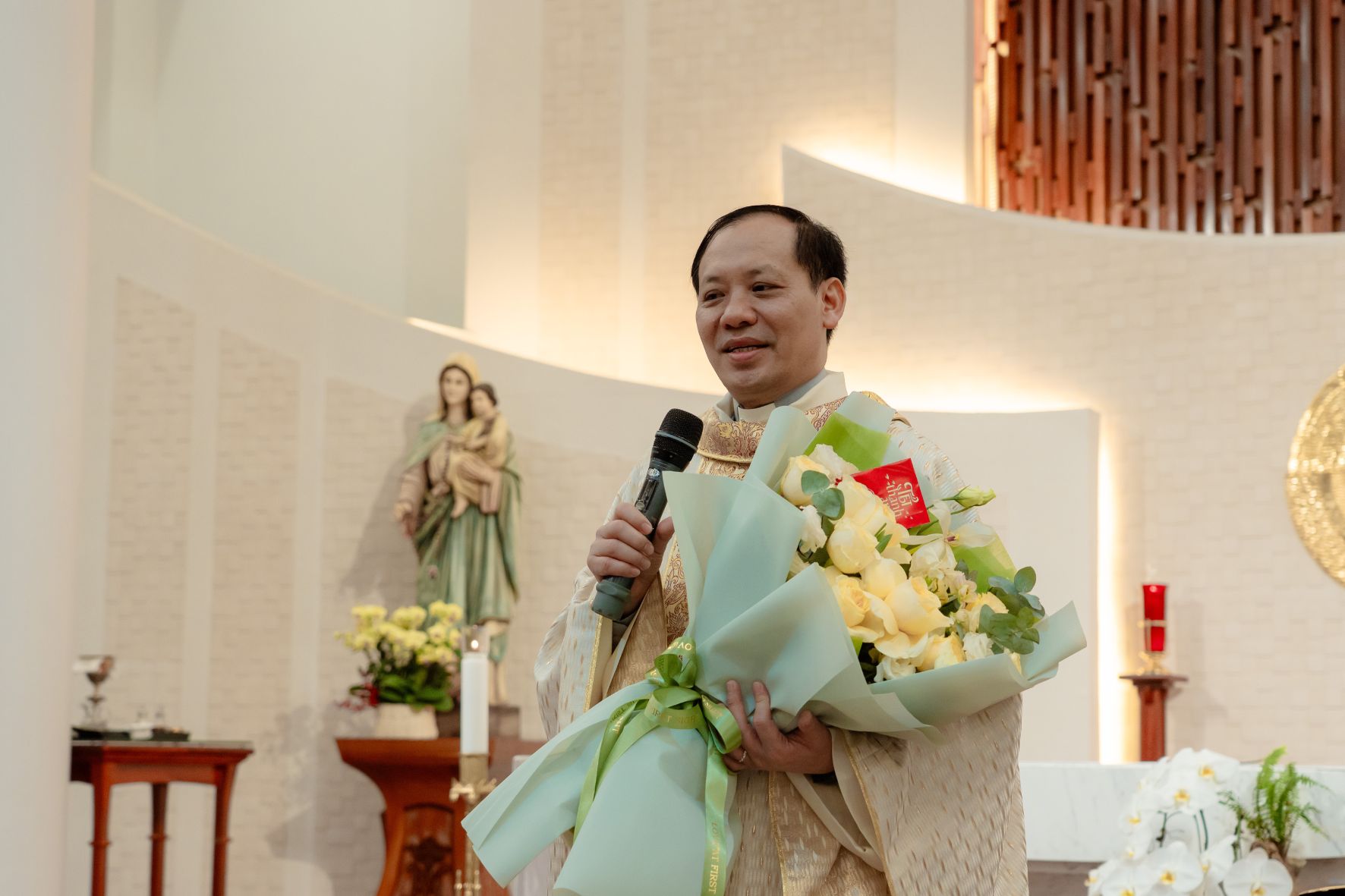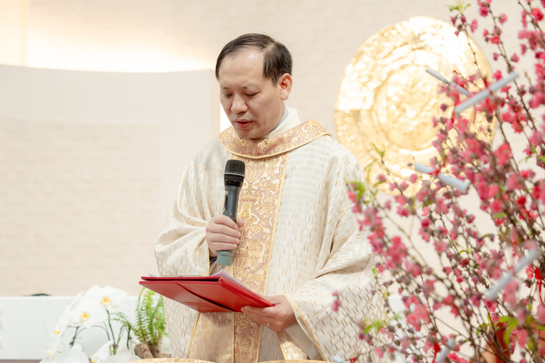 Trước khi kết thúc Thánh lễ, Chị Tổng Phụ Trách Maria Đỗ Thị Như Hoa đã đại diện Hội dòng gửi lời chúc Tết đến Cha Tuyên Úy Giuse, với tâm tình tri ân chân thành vì sự đồng hành và nâng đỡ thiêng liêng mà Cha luôn dành cho cộng đoàn. Những lời chúc đầu xuân không chỉ là nét đẹp truyền thống, nhưng còn diễn tả lòng biết ơn sâu xa đối với sự hiện diện mục tử âm thầm của Cha trong đời sống Hội dòng. Đáp lại, Cha Tuyên Úy Giuse gửi lời chúc năm mới bình an và dồi dào ân sủng đến từng chị em, khích lệ cộng đoàn tiếp tục bước đi trong niềm vui, lòng trung tín và sự phó thác.