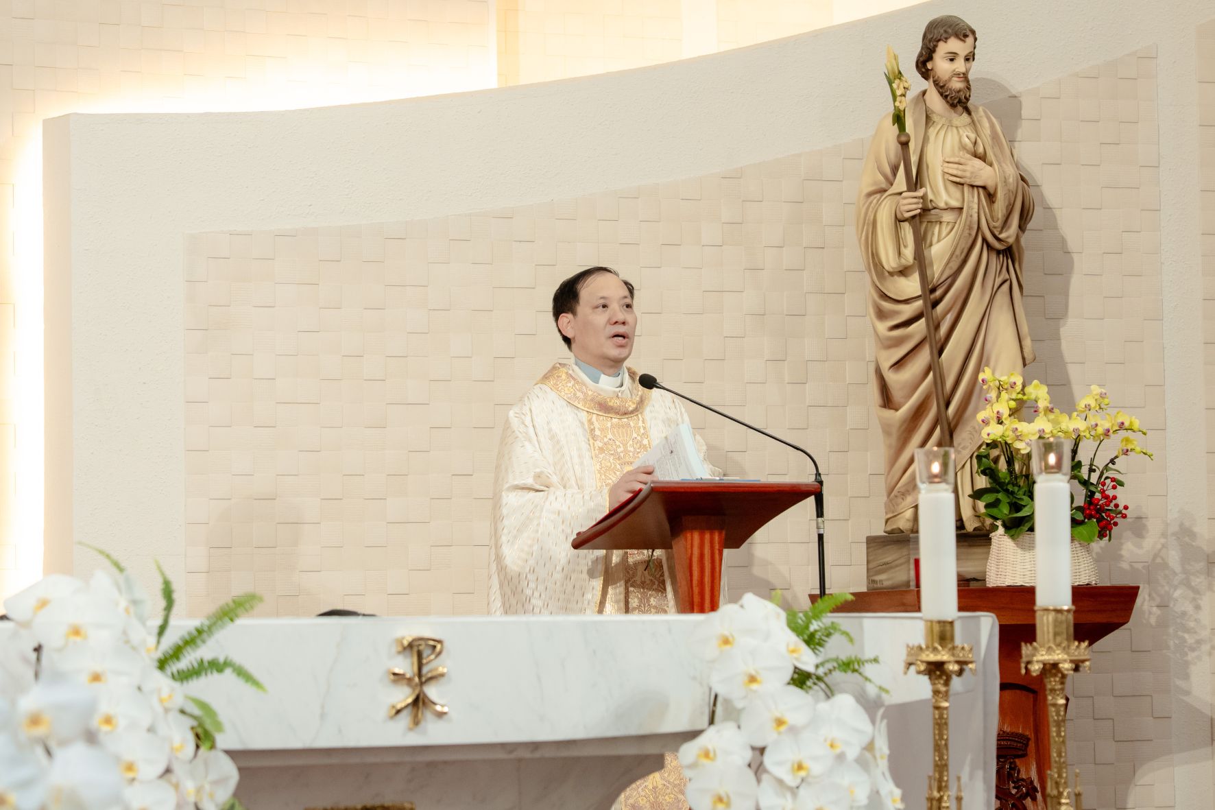 Trong bầu khí trang nghiêm và sốt sắng của buổi sớm đầu xuân, cộng đoàn dâng lên Chúa năm mới với tất cả chương trình, dự định và sứ mạng, xin Ngài chúc lành và hướng dẫn. Khởi đi từ Tin Mừng Mt 6,25–34, Cha chủ tế mời gọi chị em đặt Thiên Chúa ở vị trí ưu tiên, tín thác vào sự quan phòng của Ngài, và tìm kiếm Nước Trời như định hướng căn bản cho đời thánh hiến.