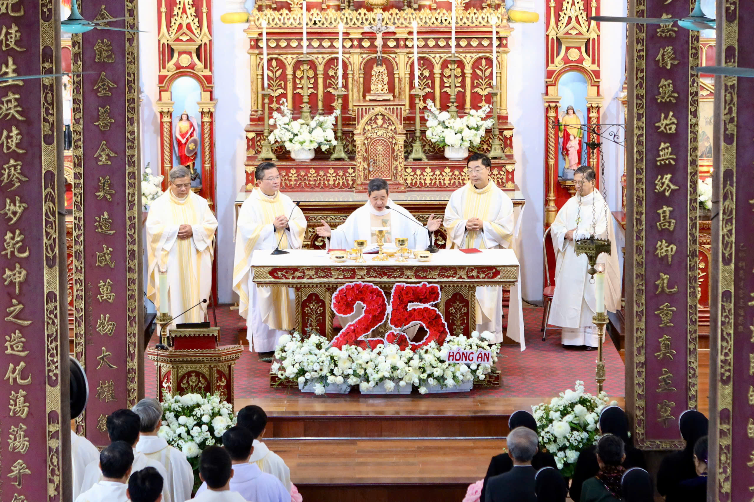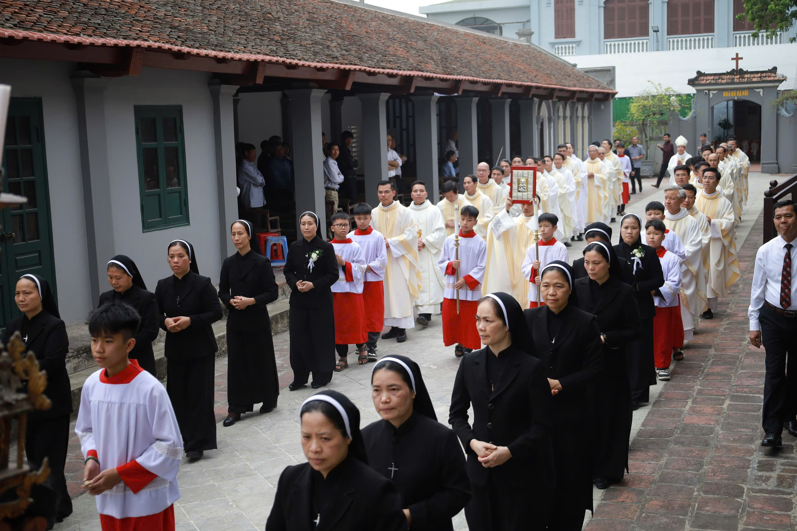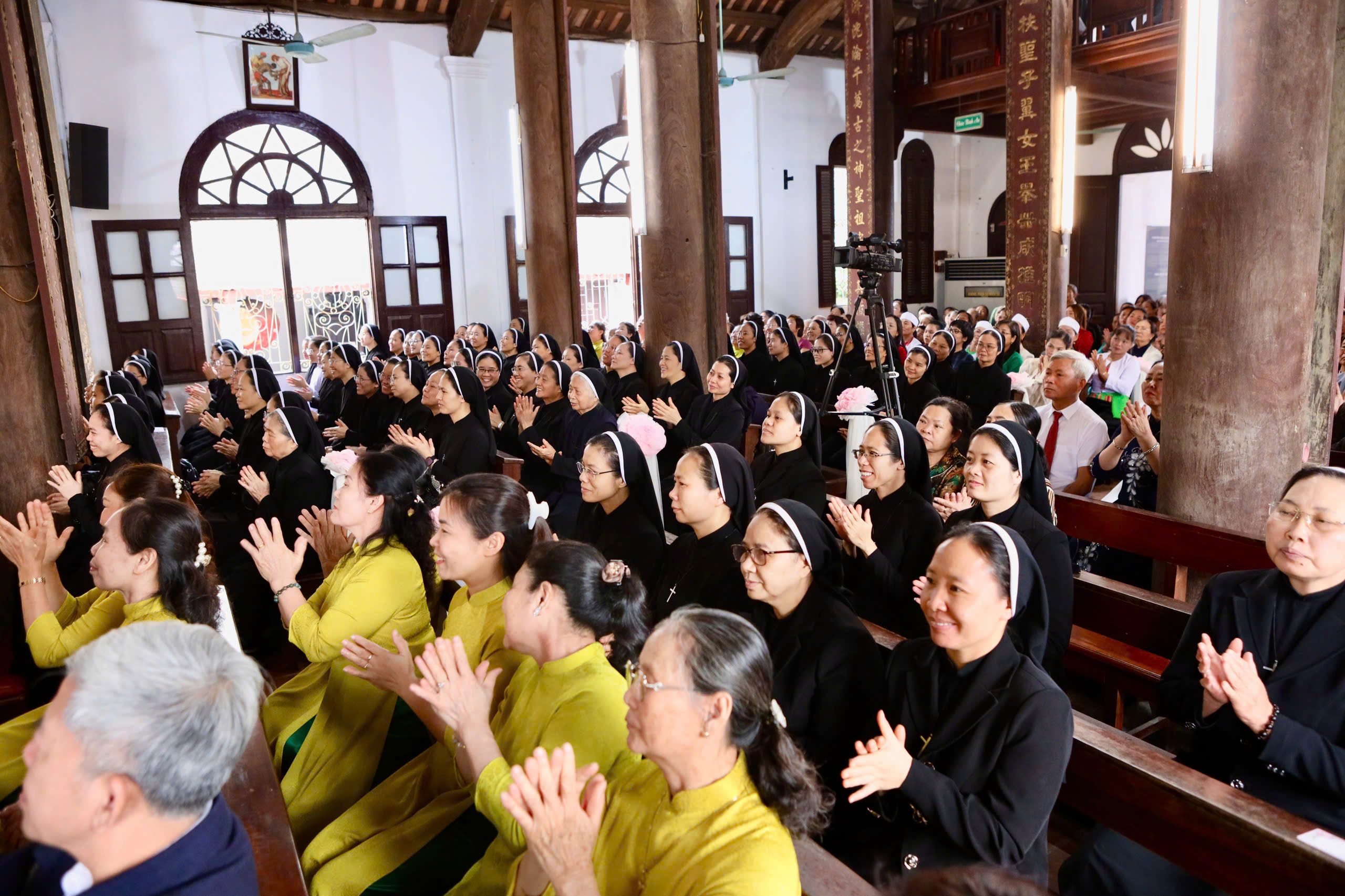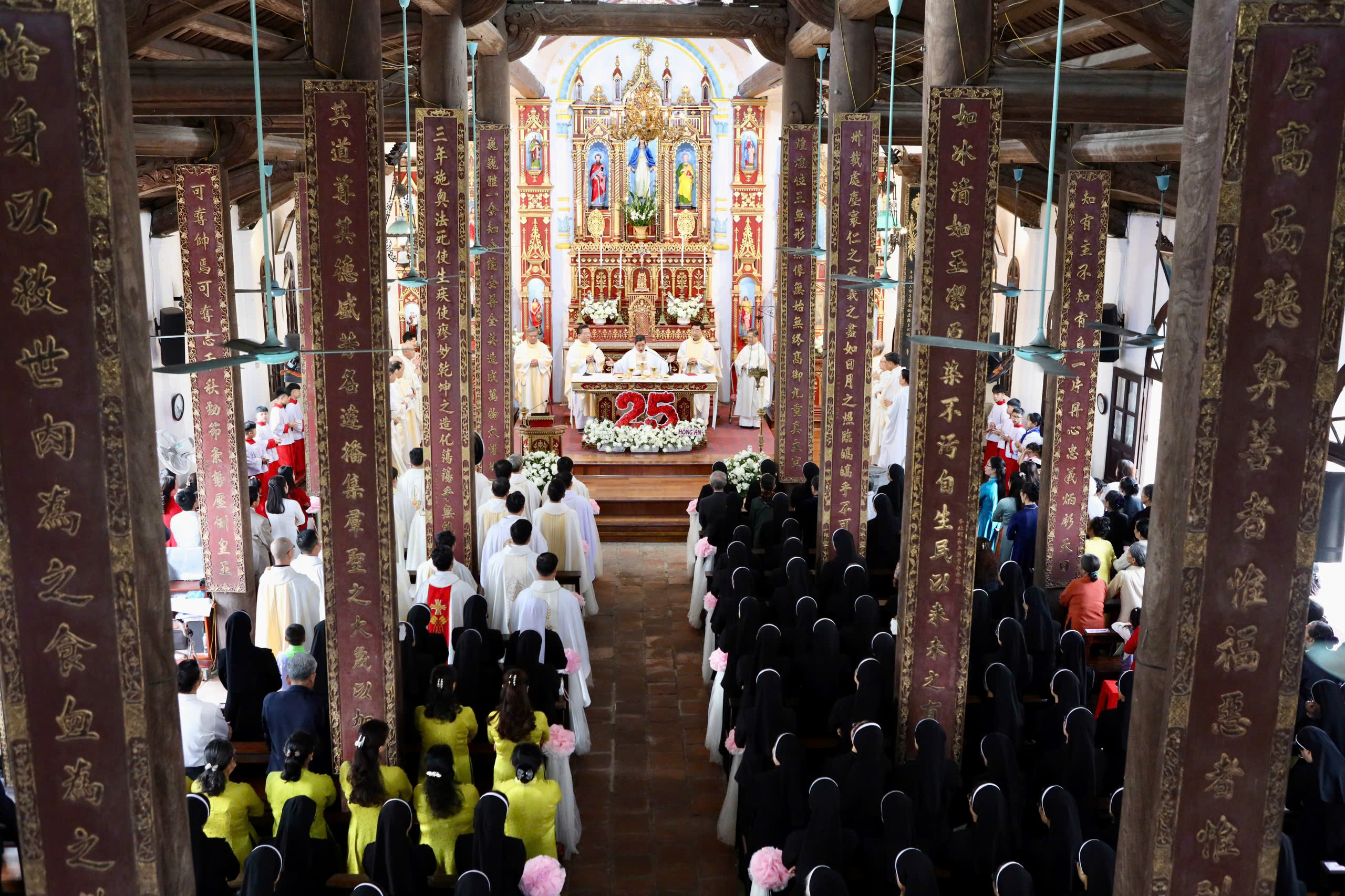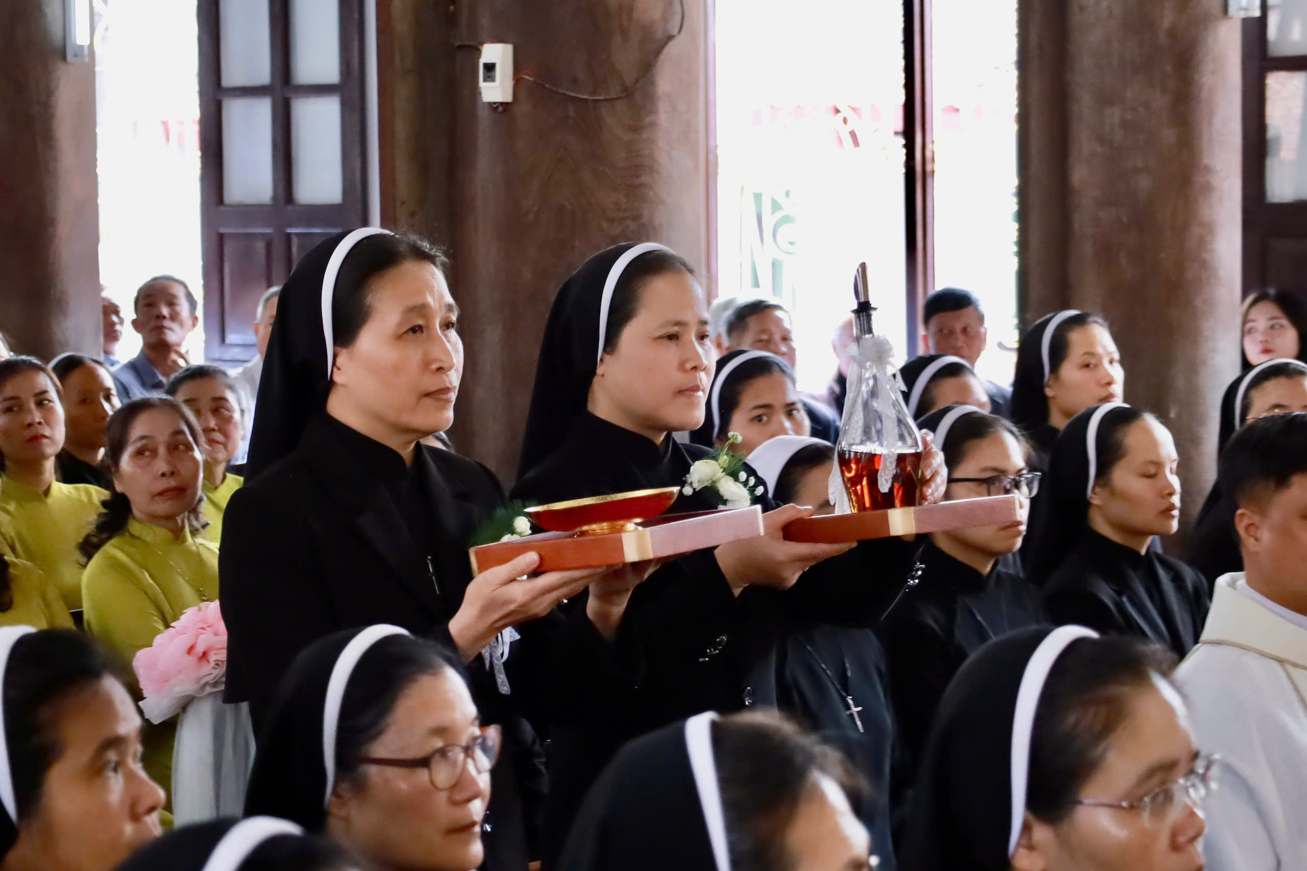 Trong bầu khí linh thiêng của mùa Chay Thánh, cộng đoàn dân Chúa đã cùng quy tụ để dâng lời tạ ơn Thiên Chúa vì hồng ân ơn gọi thánh hiến. Với tâm tình “Tất cả là hồng ân”. Vào lúc 9 giờ 30 sáng thứ Bảy, ngày 14 tháng 3 năm 2026, tại Giáo xứ Hà Hồi, Thánh lễ Tạ ơn mừng Ngân khánh khấn dòng (25 năm) của hai nữ tu Maria Đỗ Nguyệt Ánh và Maria Nguyễn Thị Mừng đã được cử hành cách long trọng và sốt sắng. Thánh lễ do Đức Cha Đa Minh Hoàng Minh Tiến – Giám Mục Giáo Phận Hưng Hoá chủ tế, cùng sự hiệp thông của quý cha đồng tế. Hiện diện trong Thánh lễ còn có đông đảo chị em thuộc Dòng Mến Thánh Giá Hà Nội từ các cộng đoàn, quý nam nữ tu sĩ, quý cộng đoàn giáo xứ Hà Hồi, quý thân nhân, ân nhân và bạn bè xa gần. Tất cả cùng quy tụ trước bàn thờ Chúa để hiệp dâng lời tạ ơn, cầu nguyện và chia sẻ niềm vui với hai nữ tu trong dấu mốc đặc biệt của hành trình dâng hiến.