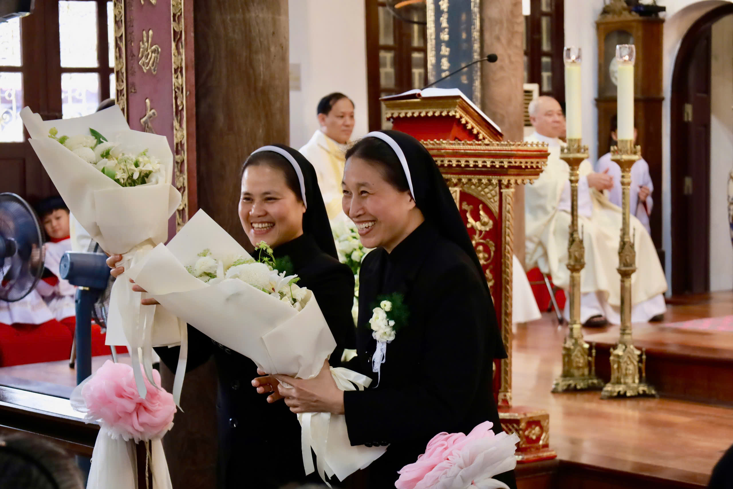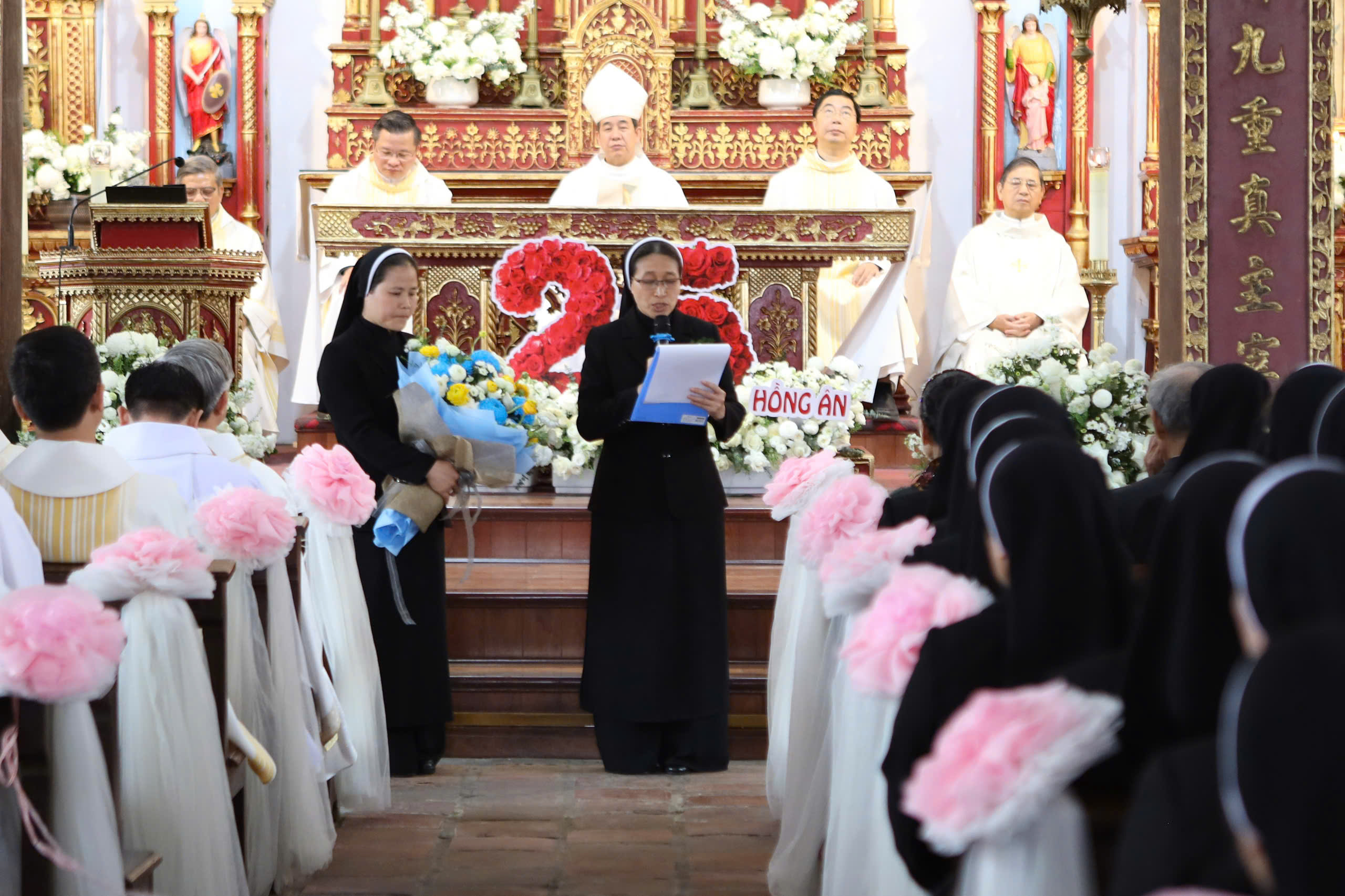 Trước khi kết thúc Thánh lễ, hai nữ tu đã dâng lời tạ ơn Thiên Chúa và bày tỏ lòng tri ân đến Đức Cha Đa Minh, quý cha đồng tế và toàn thể cộng đoàn hiện diện. Cách đặc biệt, hai Sơ bày tỏ lòng biết ơn sâu sắc đến quý chị Bề trên và toàn thể chị em Dòng Mến Thánh Giá Hà Nội, những người đã quảng đại đón nhận, đồng hành và nâng đỡ các chị trong suốt hành trình ơn gọi và đời sống dâng hiến.
