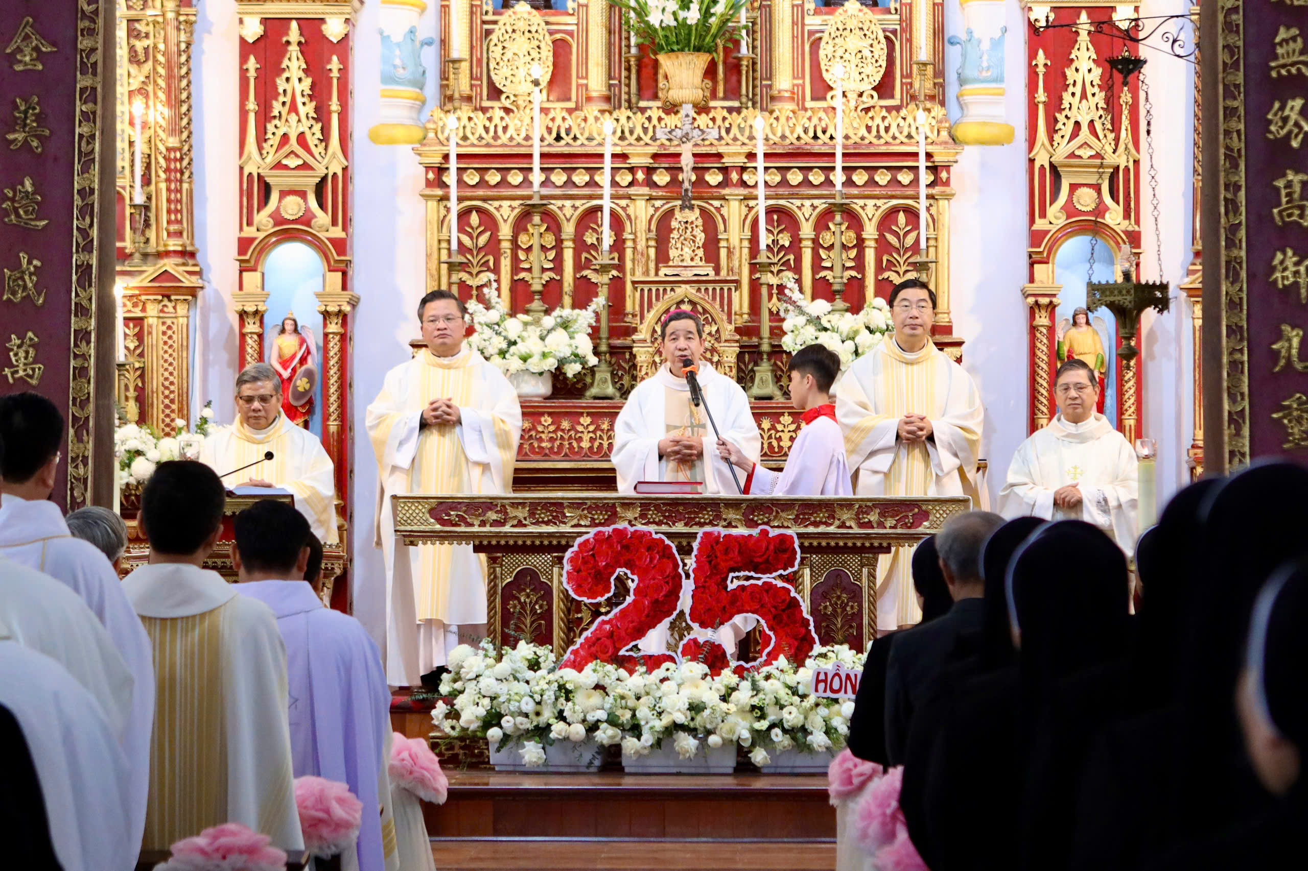 Từ dấu mốc Ngân khánh khấn dòng hôm nay, ước mong rằng hai Sơ sẽ tiếp tục bước đi trong niềm tín thác và lòng yêu mến sâu xa hơn đối với Đức Kitô Chịu Đóng Đinh. Xin cho đời sống của các Sơ luôn phản chiếu tình yêu của Đấng chịu đóng đinh, trở nên dấu chỉ sống động của hy vọng và lòng thương xót giữa lòng Hội Thánh và thế giới. Nguyện xin Thiên Chúa là Cha nhân từ tiếp tục tuôn đổ muôn ơn lành trên hai chị, để hành trình dâng hiến của quý Sơ mãi là bài ca tạ ơn không ngừng, và là lời chứng âm thầm nhưng mạnh mẽ về tình yêu Thiên Chúa dành cho nhân loại.