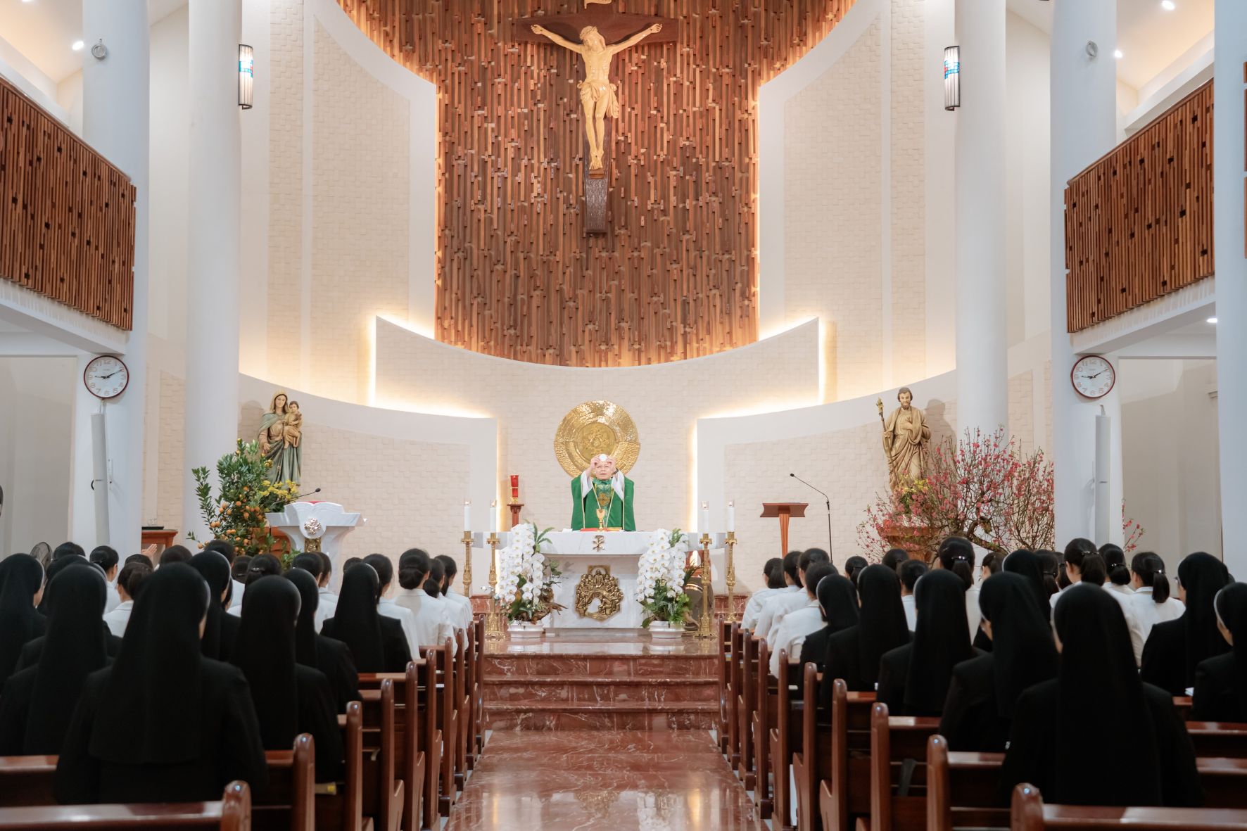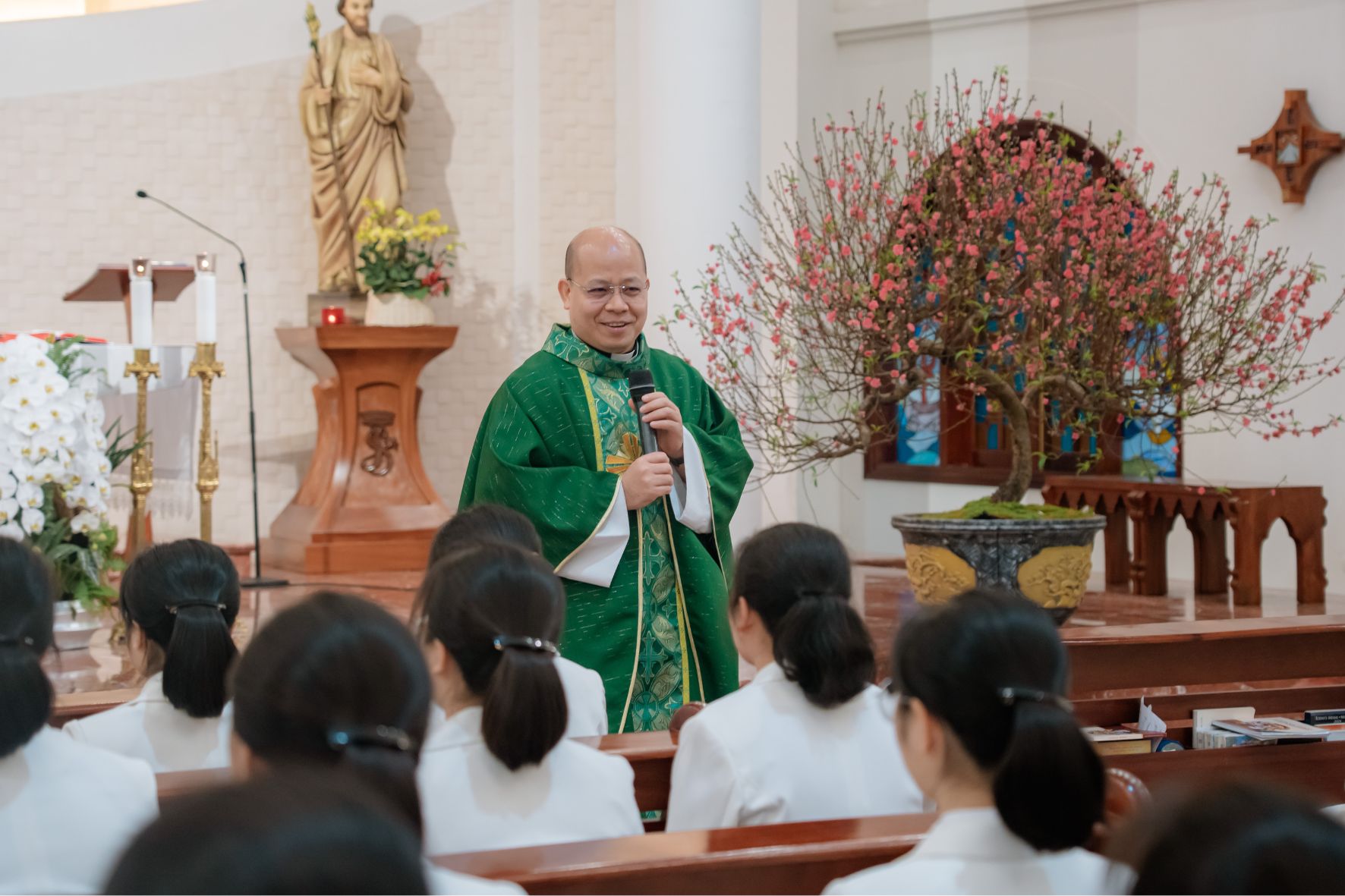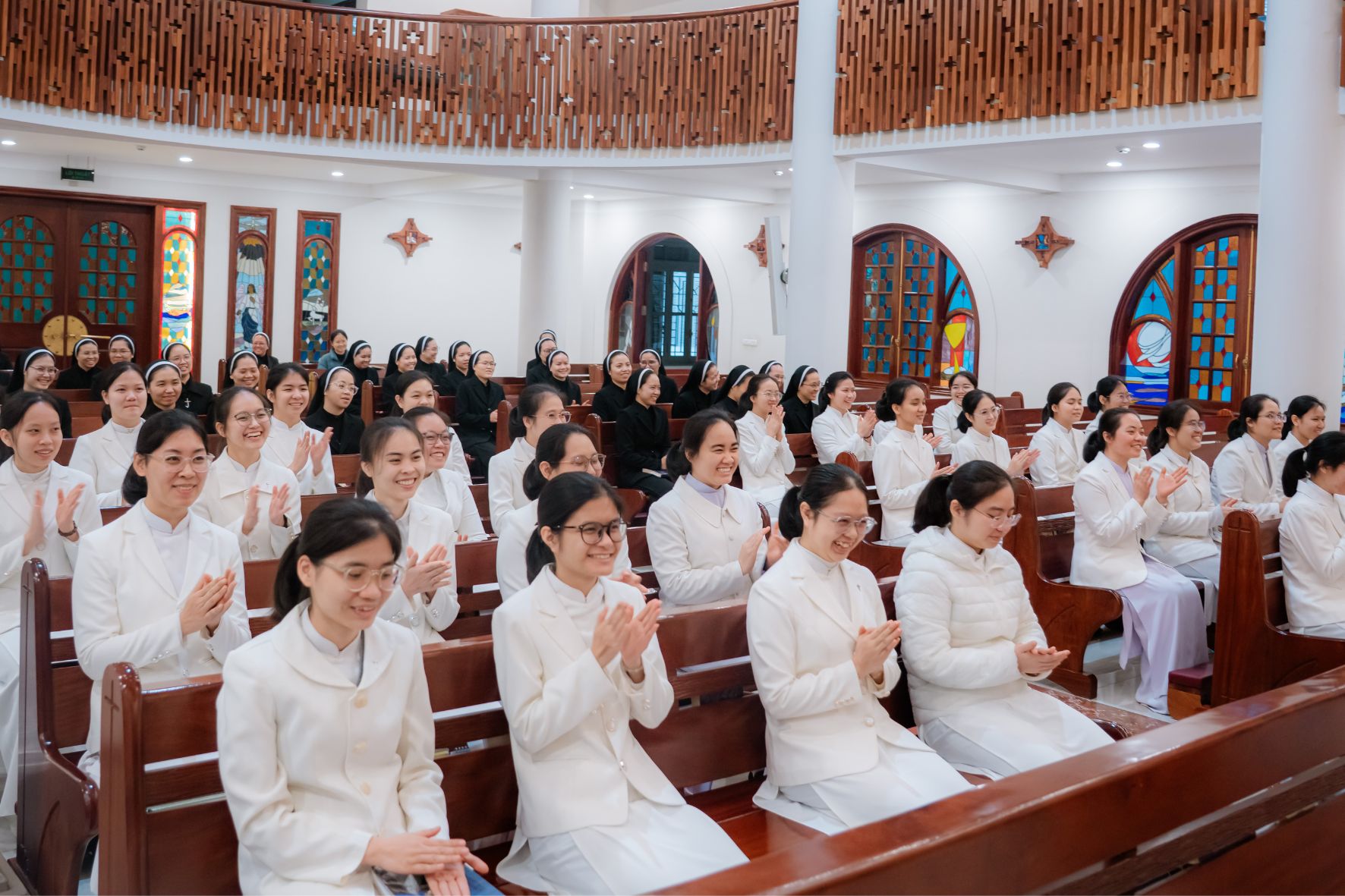 Thánh lễ do cha Phê-rô Trần Quang Diệu chủ sự, với sự hiện diện của quý Bà, quý Sơ Khấn trọn, quý sơ khối Học viện, cùng chị em Khối Thanh Tuyển – Đệ Tử. Bầu khí phụng vụ diễn ra trang nghiêm, hiệp nhất và thấm đượm tinh thần cầu nguyện.