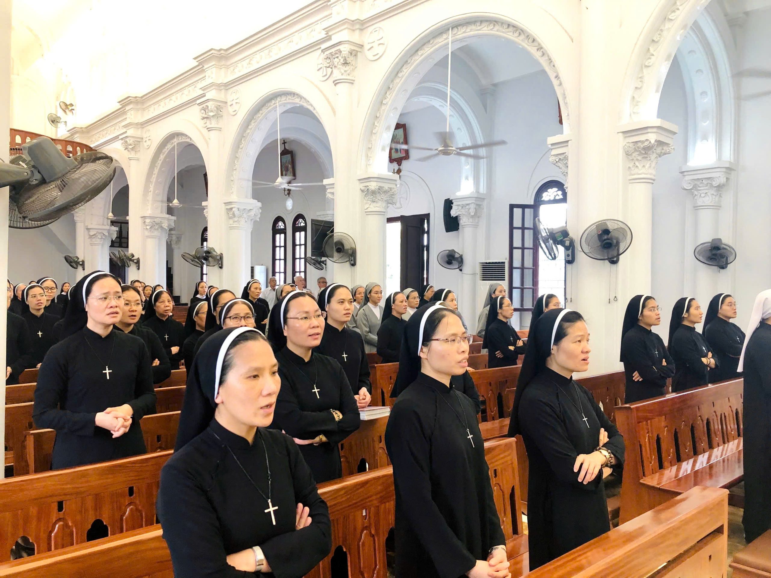 Đúng 8g00 sáng, thứ Bảy ngày 25/4/2026, tại thánh đường giáo xứ An Phú, quý cha Dòng Phanxicô, cha Giuse Tạ Xuân Hòa – chính xứ giáo xứ An Phú, cha phó Phanxicô Xaviê Vũ Minh Cường, quý cha, quý sơ Dòng Thánh Phaolô, quý sơ Dòng Mân Côi Chí Hòa, cùng đông đảo quý sơ Dòng Mến Thánh Giá Hà Nội đang phục vụ trong giáo hạt đã hiện diện trong bầu khí hiệp thông và sốt sắng. Ngày họp mặt diễn ra trong tâm tình tĩnh tâm, mở ra cơ hội để mỗi người trở về với Chúa và làm mới lại ơn gọi của mình.